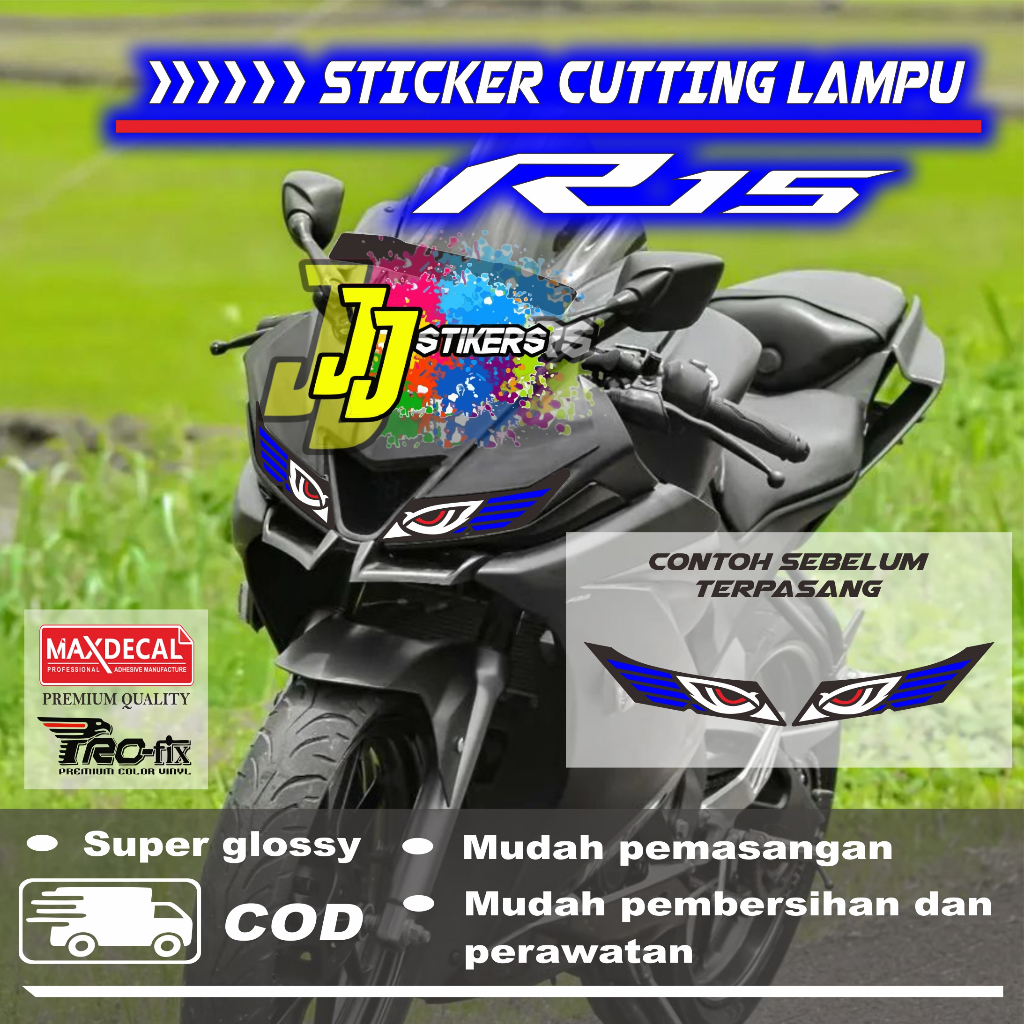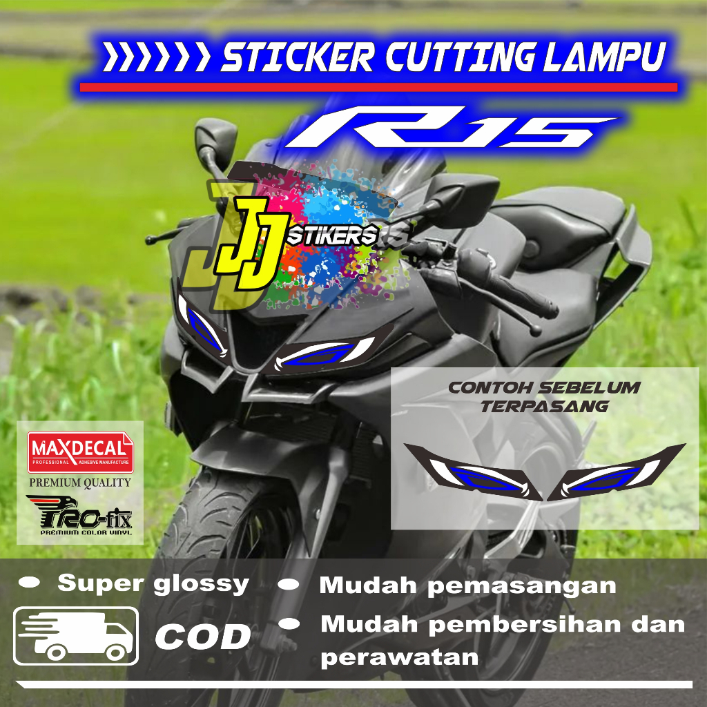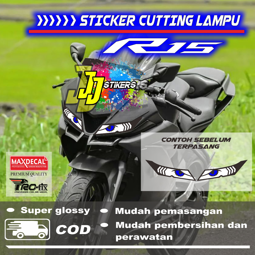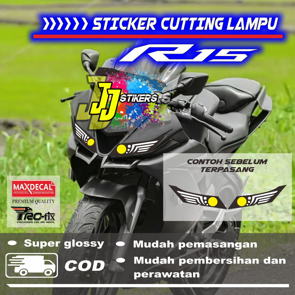 Sticker variasi lampu depan headlamp motor R15 v3