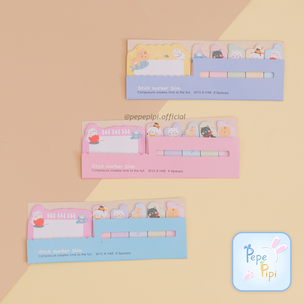 Sticky Note Cat Kotak Strip Pembatas Buku Halaman Kucing Note