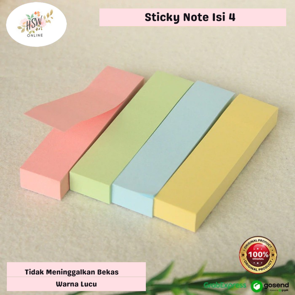 Sticky Note Kecil Isi 4 Warna Memo Stick Penanda Warna Isi 4 100 Lembar Memo Perekat Paper Material Memo Catatan Tempel Warna Warni Note Pad Stationary Perlengkapan Sekolah