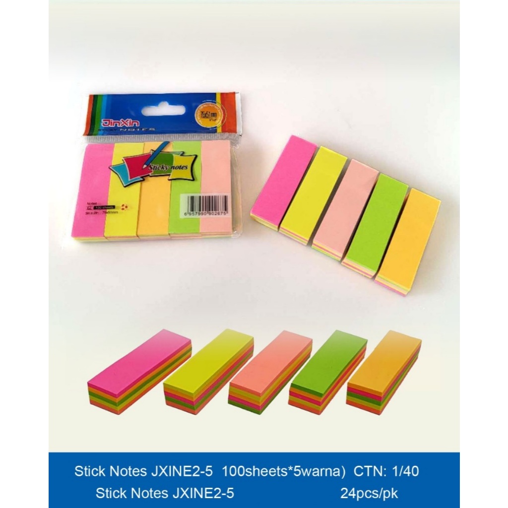 Sticky Note Stickiii/ Memo Pembatas Buku 76 x 51 mm (3 x 2 inch), 100 Sheets 5 Colour 3 Warna