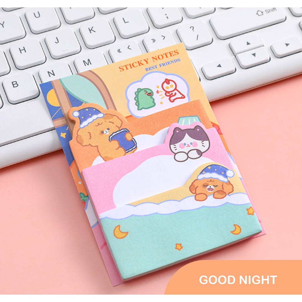 Sticky Notes 3in1 / Stick Note / Stick Maker / Kertas Memo Gambar Karakter Lucu Warna - Warni / Memo Tempel / Pembatas Buku Karakter Isi 90 Lembar