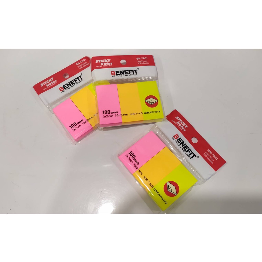 Sticky Notes / Memo Tempel / Bookmarker Benefit SN-7651 3 Potong Ukuran Sedang