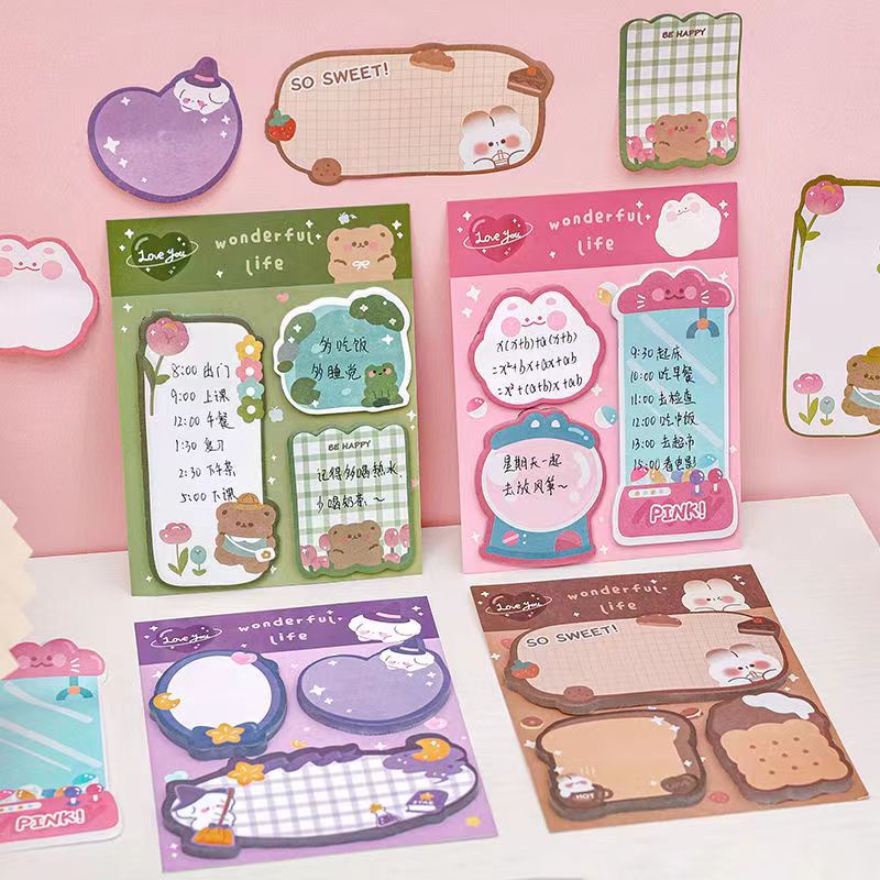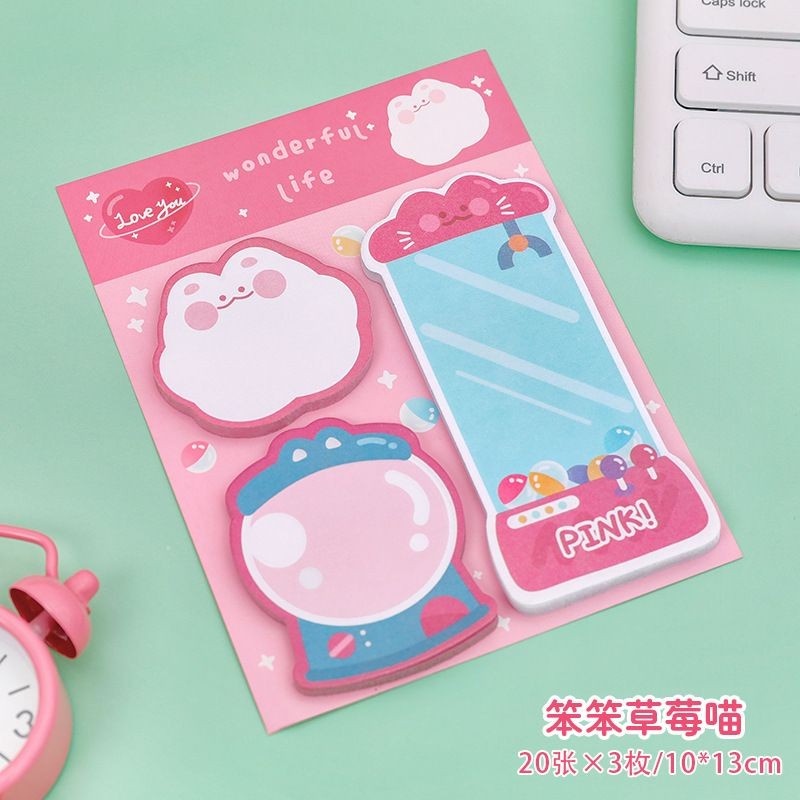 Sticky note kartun/(60 lembar) Memopad Warna 3 in 1 Wonderful Life