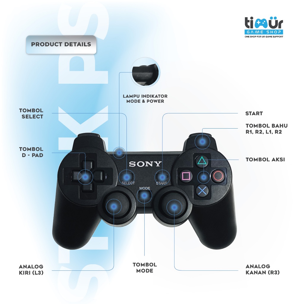 Stik Stick Controller PS2 Wireless Ori Original Pabrik Hitam