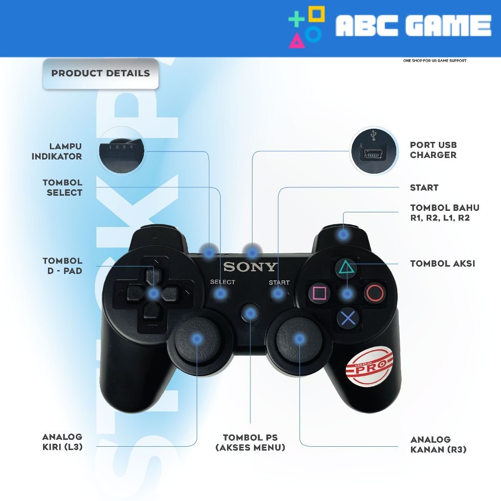 Stik Stick Controller PS3 DS3 Motion Sensor Ori Original Pabrik Hitam Prestige Pro