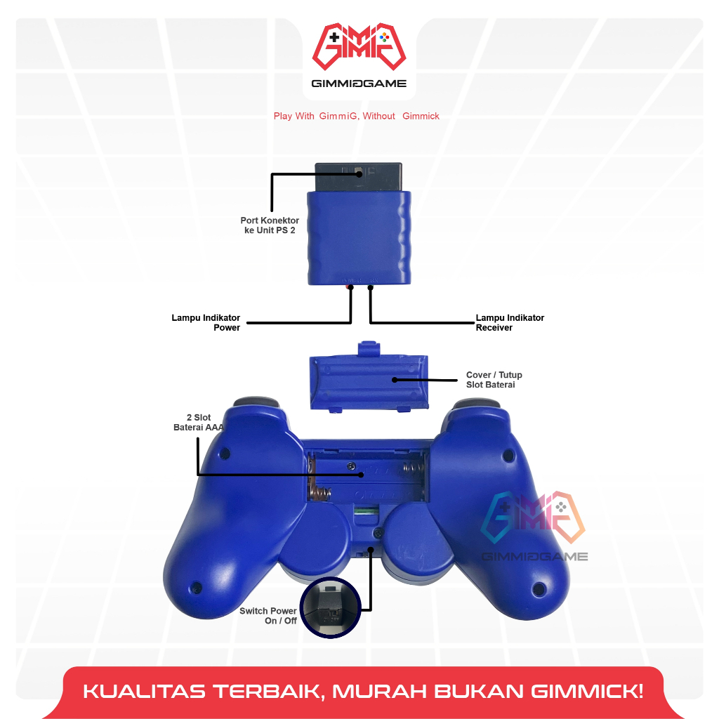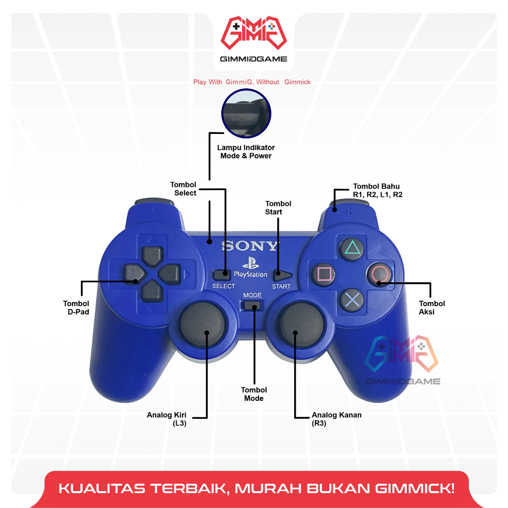 Stik Stick PS2 Wireless Ori Original Pabrik Biru