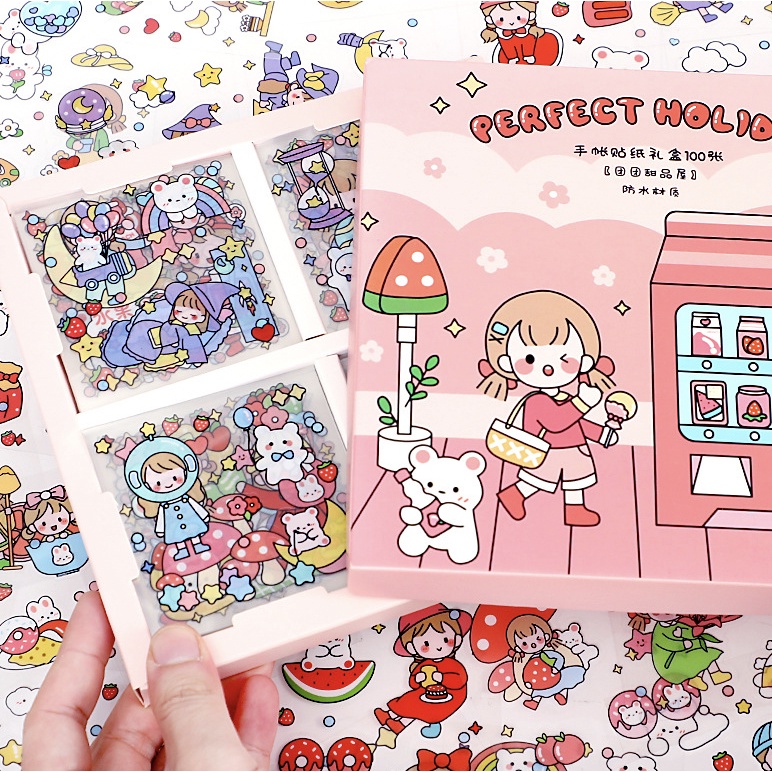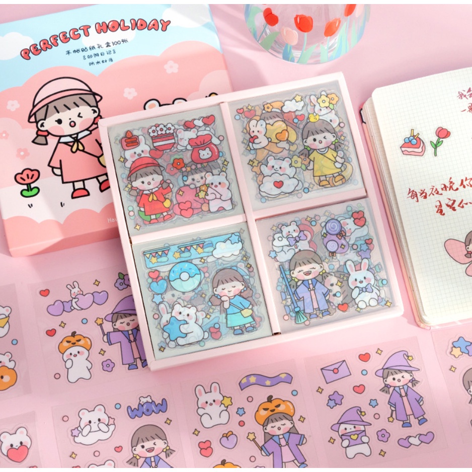 Stiker 1 Box isi 100 Lembar Sticker Bening Buat Tempel Di Botol Minum