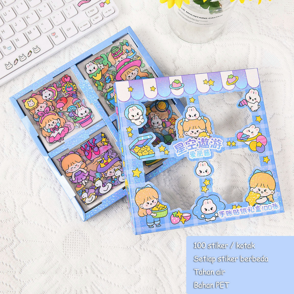 Stiker 100 Lembar Sticker Momo Kartun Korea Lucu Anti Air Sticker MOMO Rainbow Mix Warna Diy Stiker Momo Motif buku Dekorasi Handbook Scrapbook