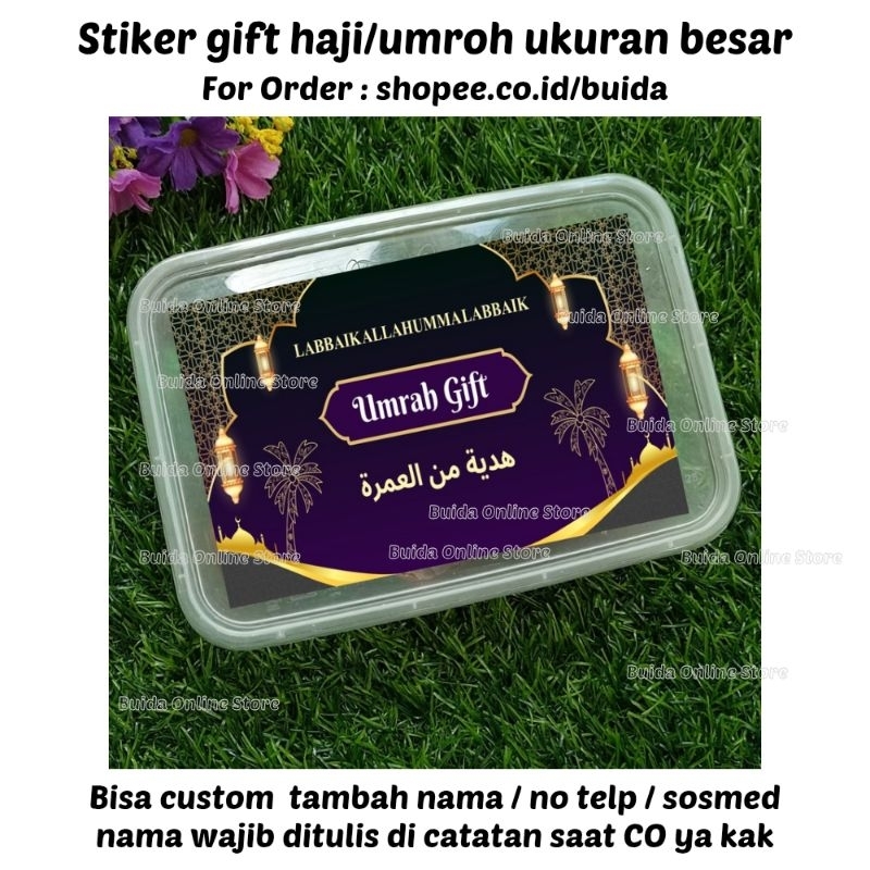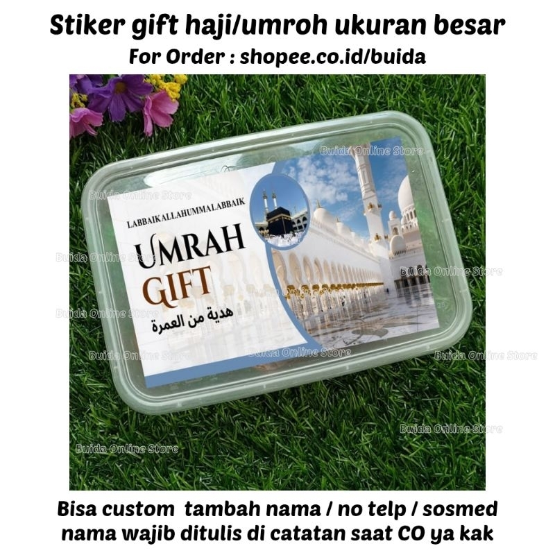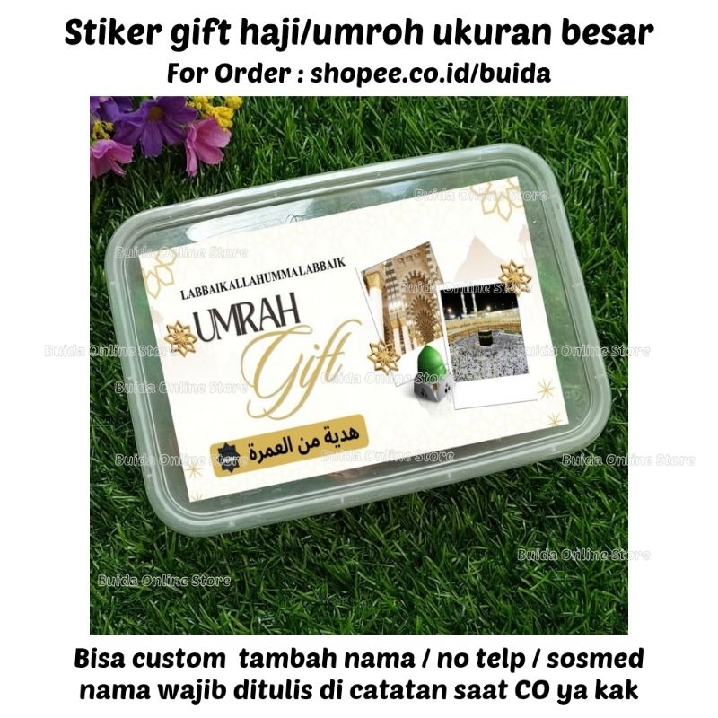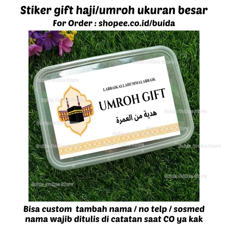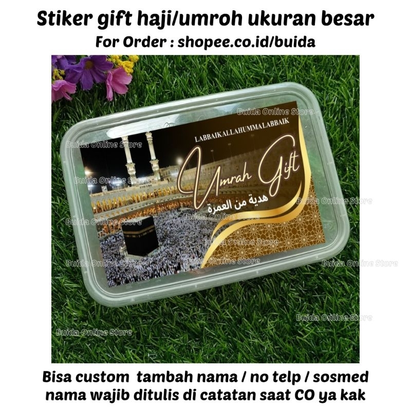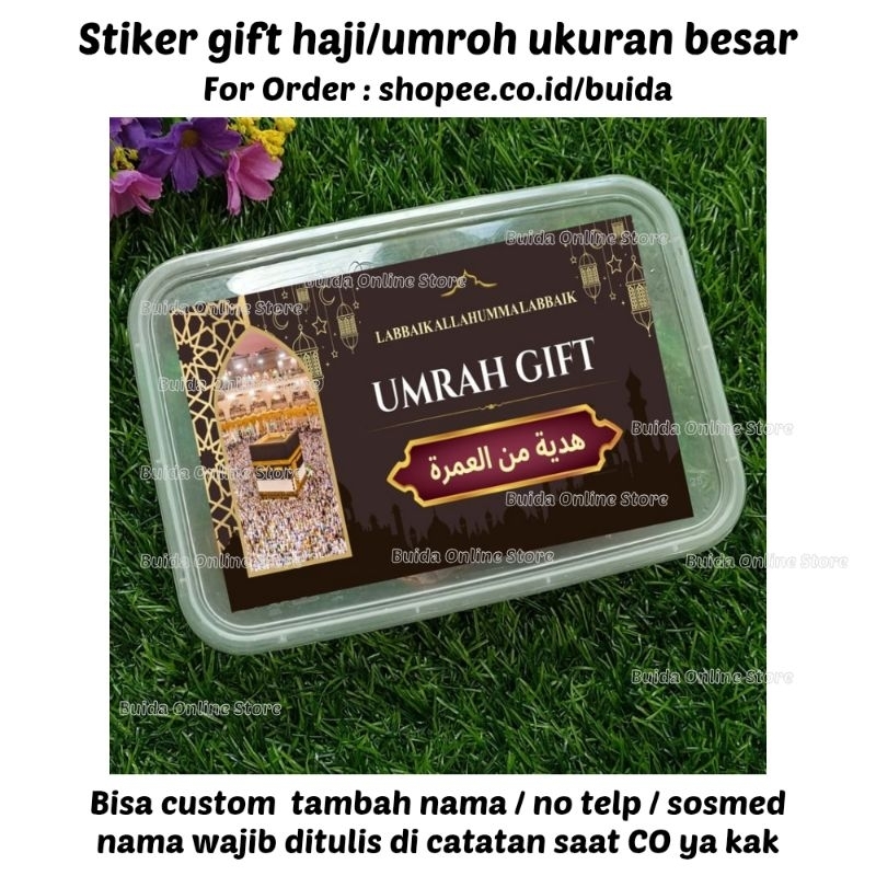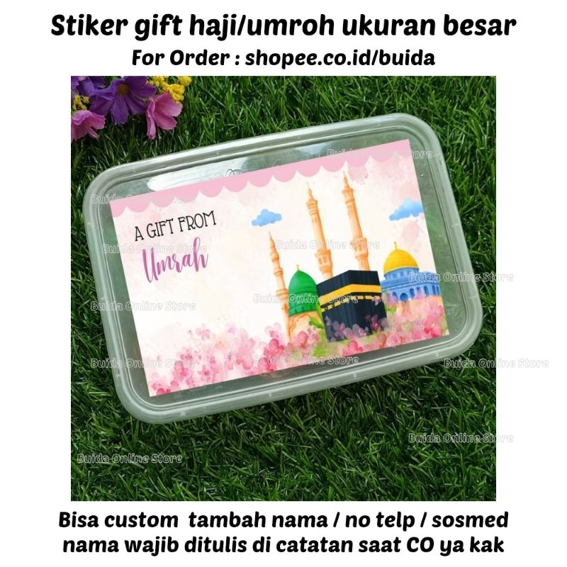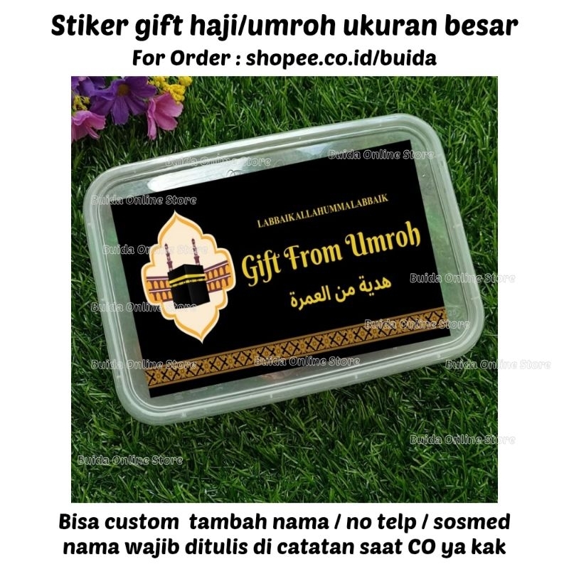 Stiker A Gift From Umroh Haji Label Sticker Kemasan Bingkisan Souvenir Hampers Hadiah oleh-oleh bisa custom tambah nama tulisan hajj dan ukuran label thinwall dus box mika paperbag kotak persegi panjang