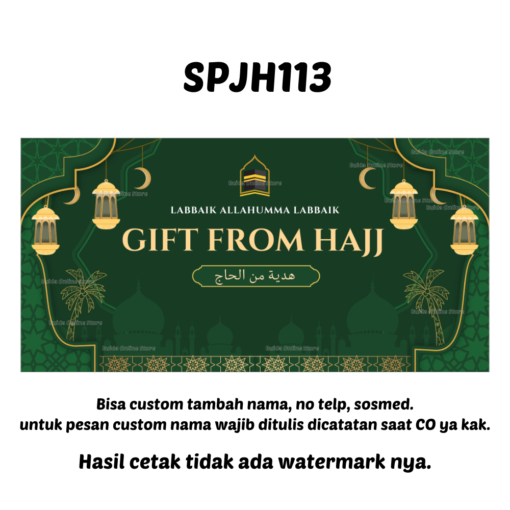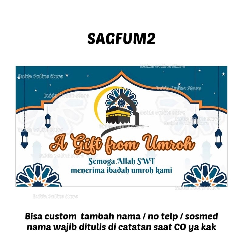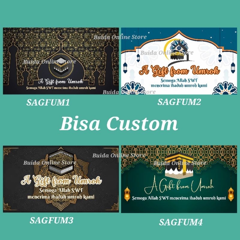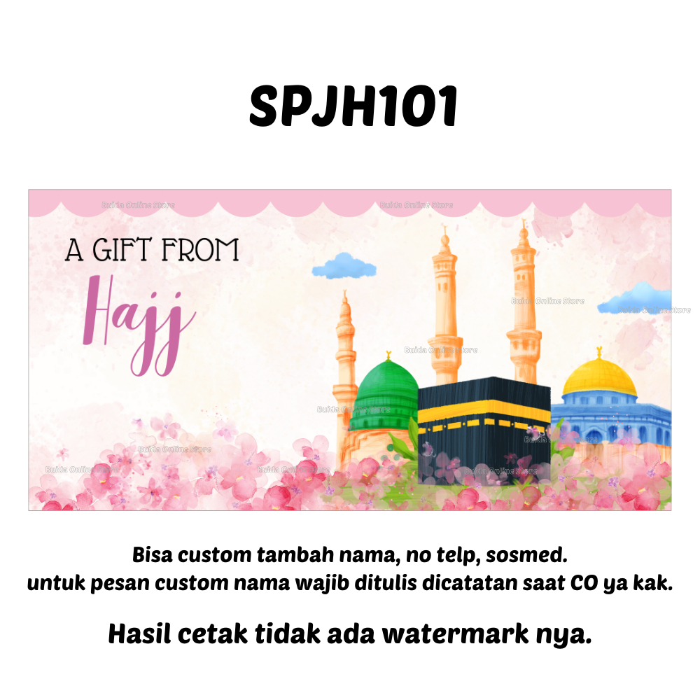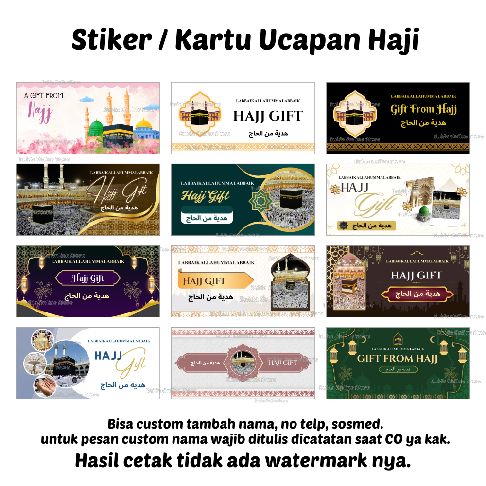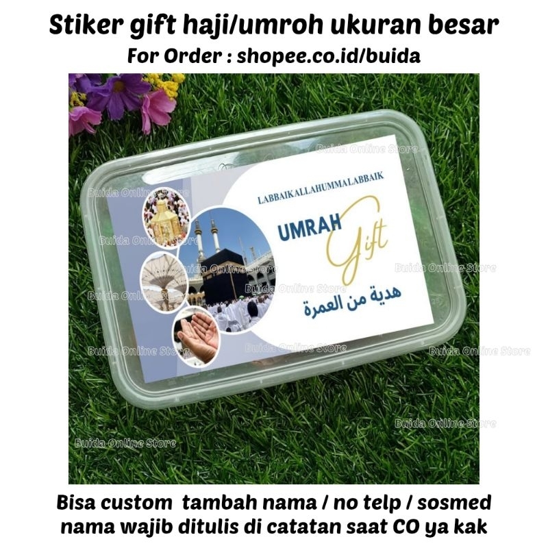 Stiker A Gift From Umroh Haji Label Sticker Kemasan Bingkisan Souvenir Hampers Hadiah oleh-oleh bisa custom tambah nama tulisan hajj dan ukuran label thinwall dus box mika paperbag kotak persegi panjang