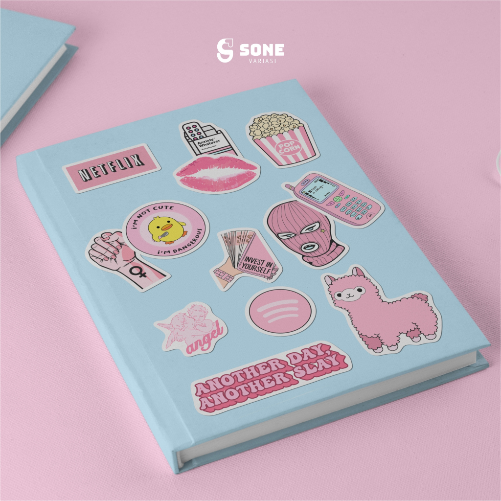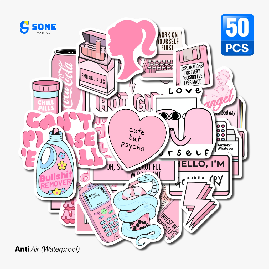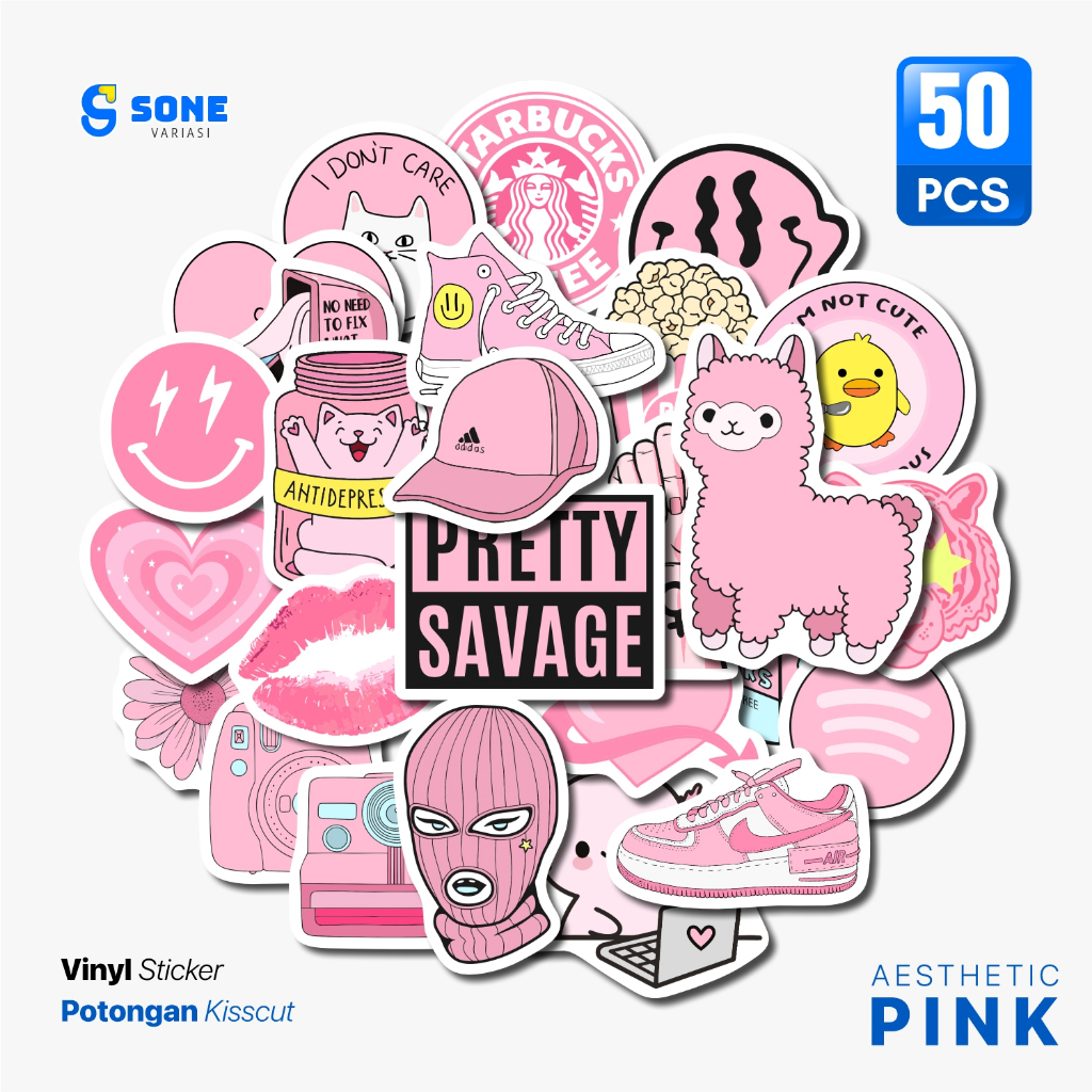 Stiker Aesthetic PINK Vinyl Waterproof Anti Air untuk Freebies Sticker Buku Journal Casing Phone