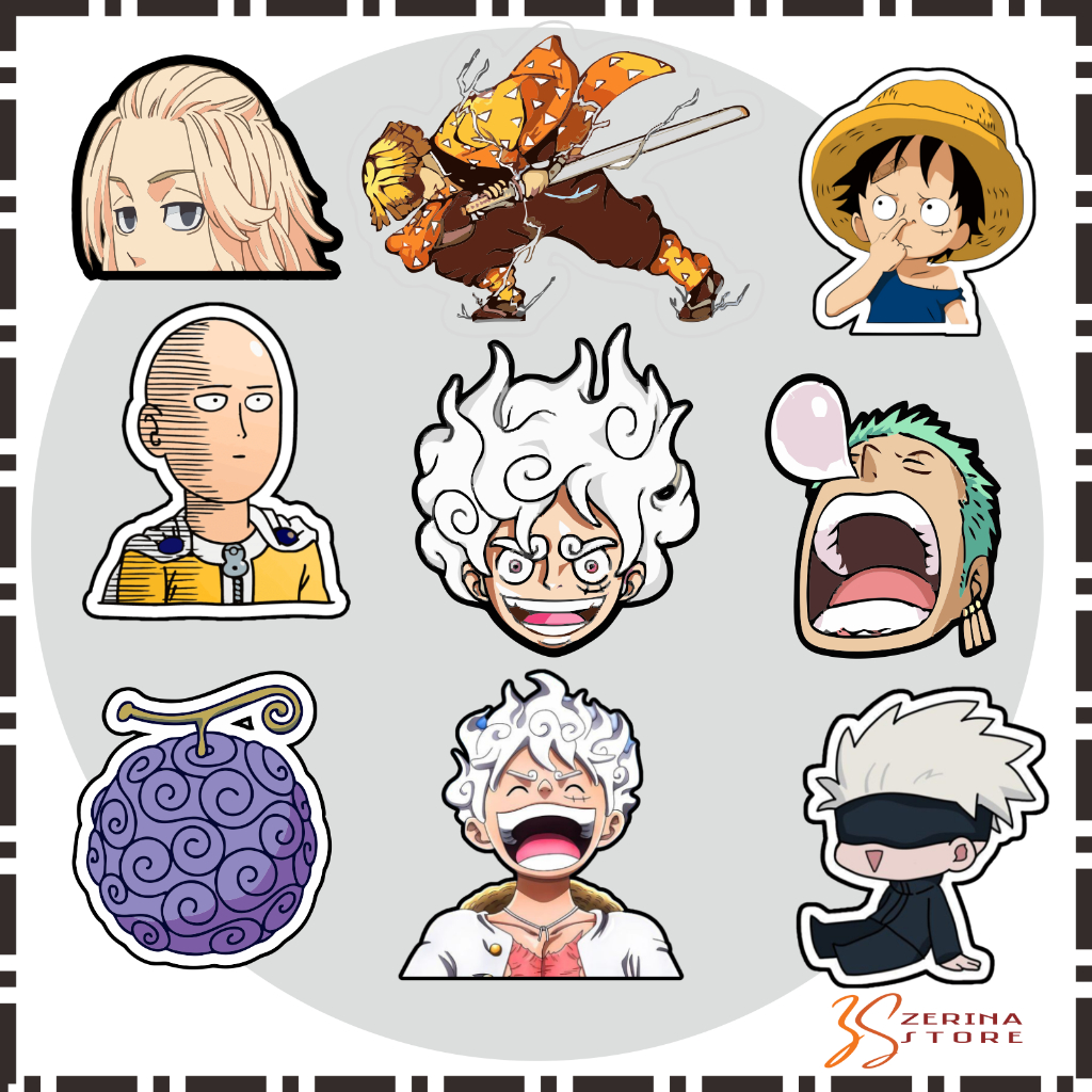 Stiker Anime Hologram Bijian Luffy Saitama Gojo Zenitsu Mikey dll