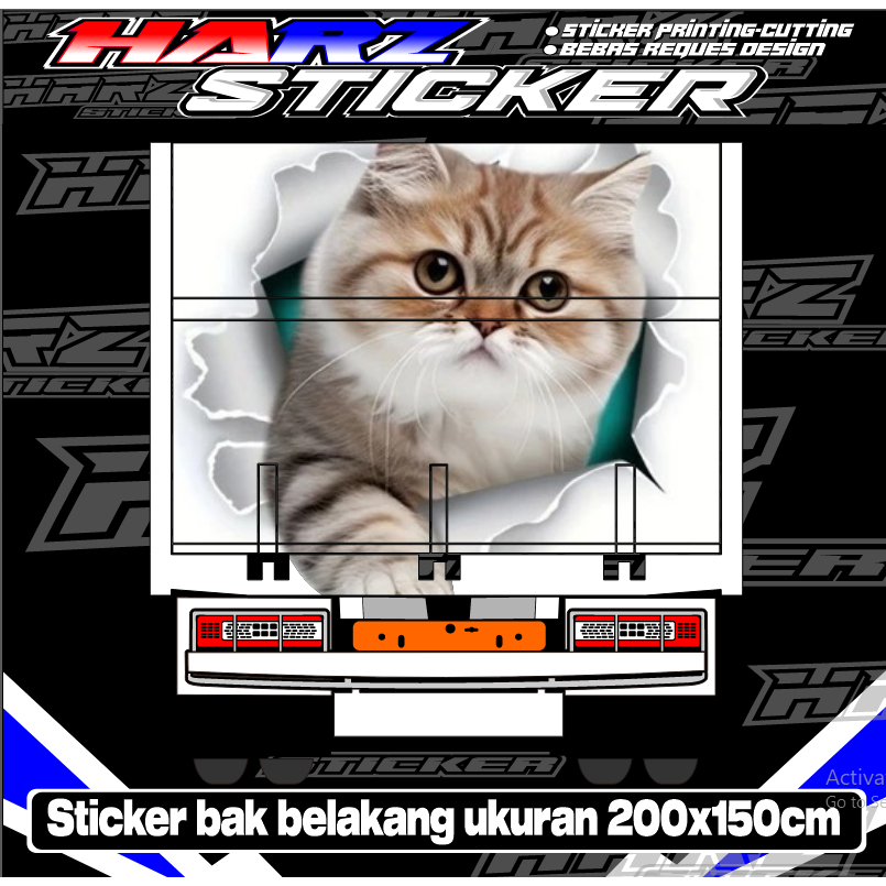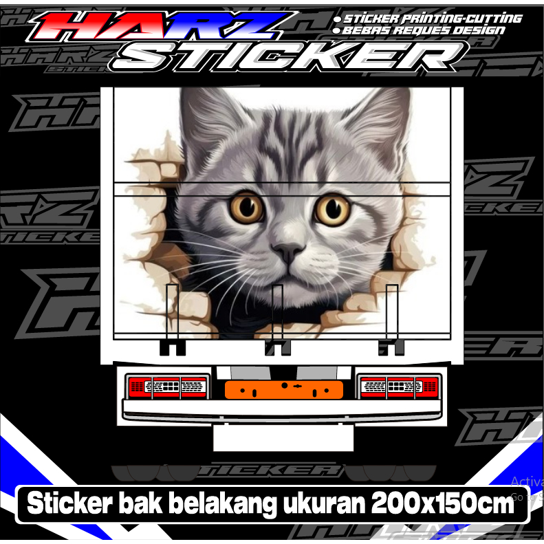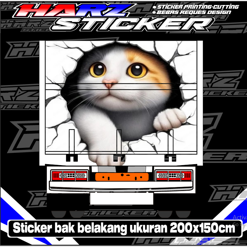 Stiker Bak Belaang Truk-Stiker Motif Kucing Ngintip-Stiker Imut-Stiker Uk200x150cm