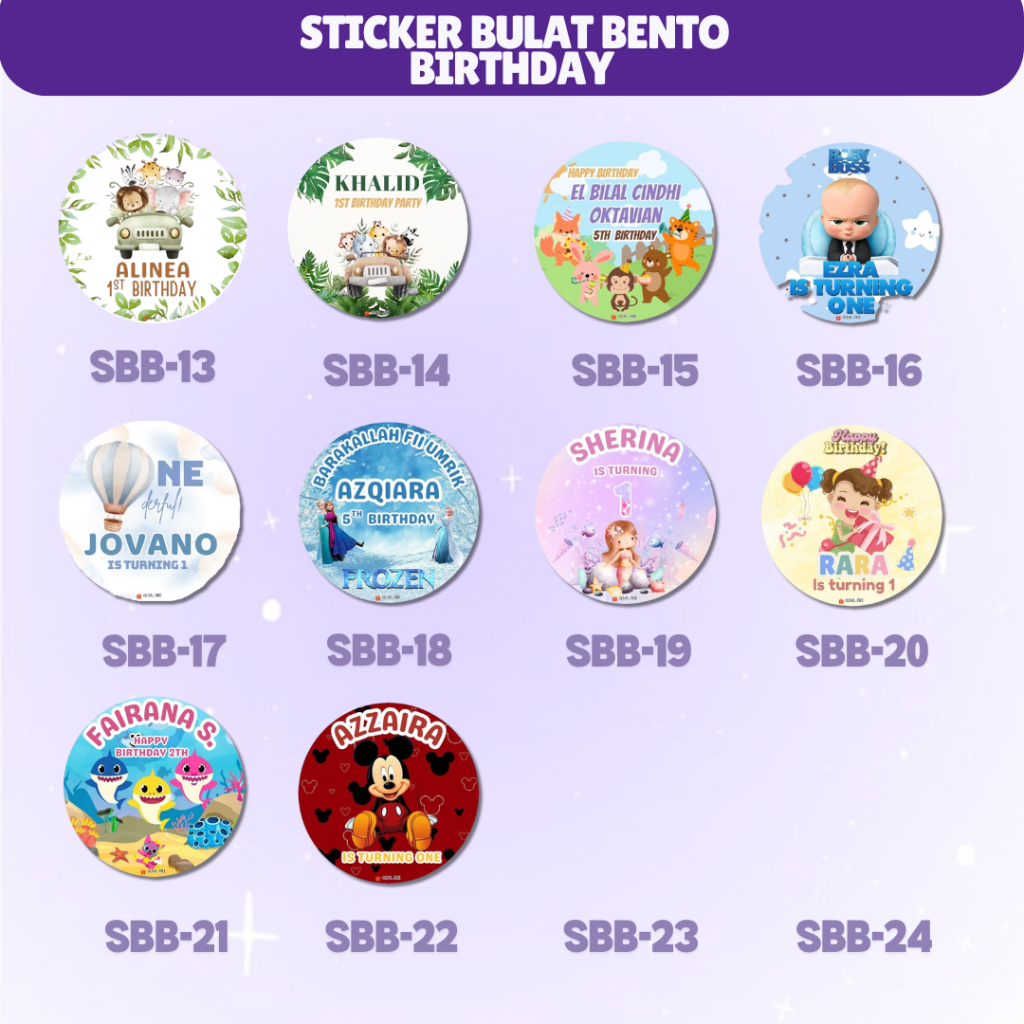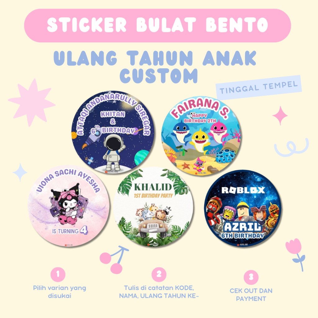 Stiker Bulat Ulang Tahun Anak Nasi Kotak Bento | Stiker Ultah Hampers Anak Custom Foto | Souvenir Birthday Sticker