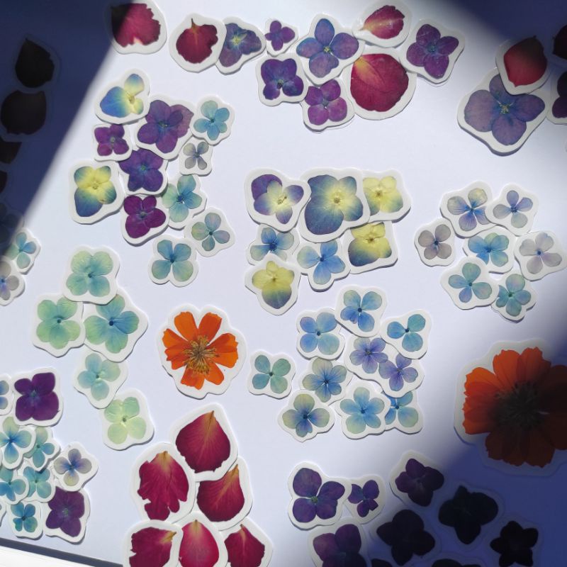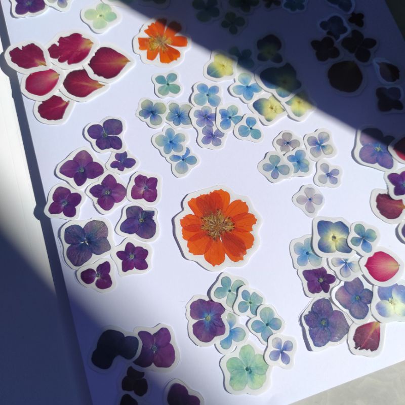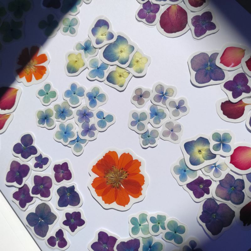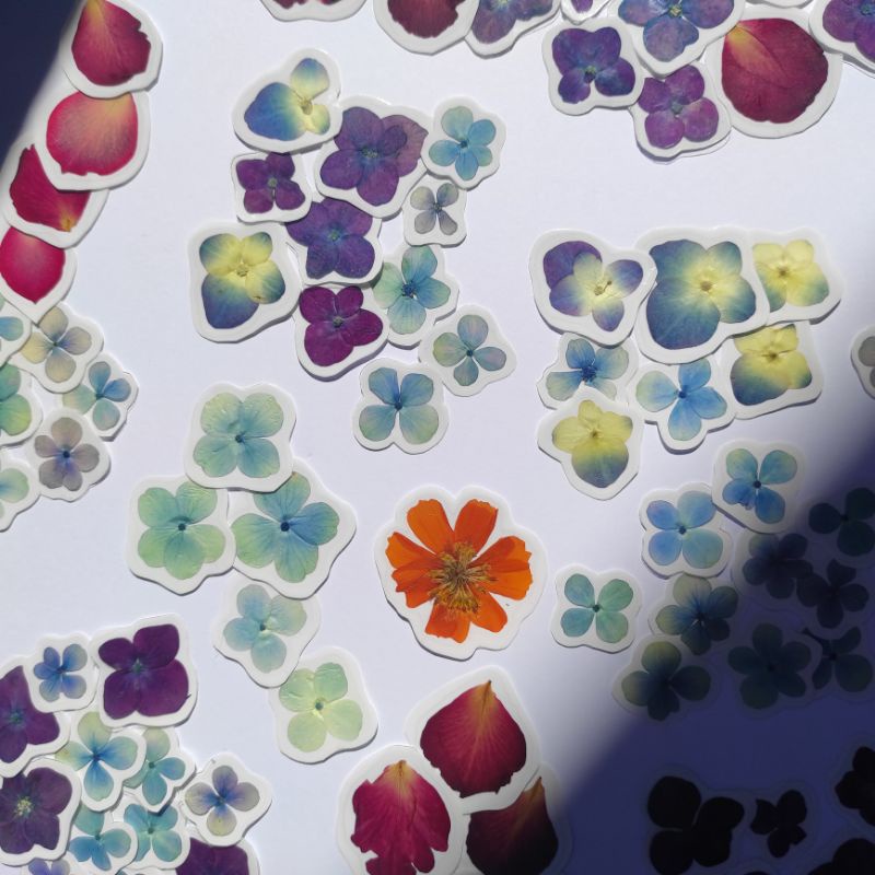 Stiker Bunga Pres Asli / Real Pressed Flower Sticker Hiasan Jurnal Tulisan Kerajinan Tangan