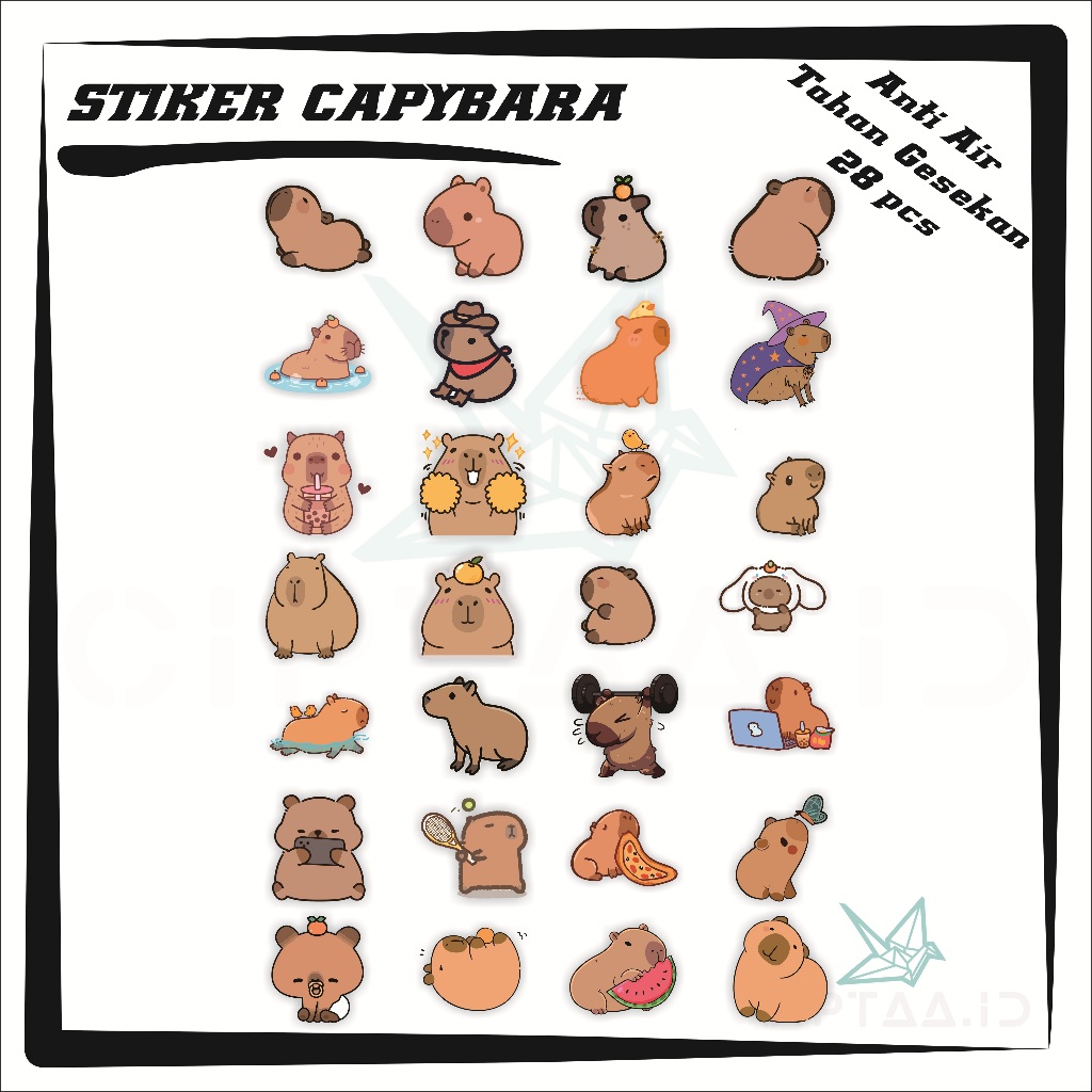Stiker Capybara - Bahan Vinyl Anti Air Tahan Gesekan 28 pcs