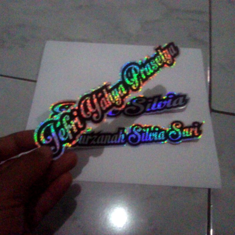 Stiker Custom Hologram nama sendiri paling murah untuk helem motor mobil laptop handphon