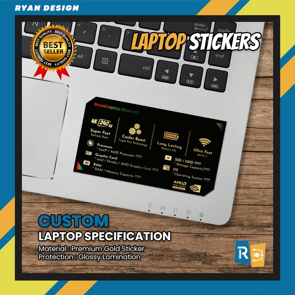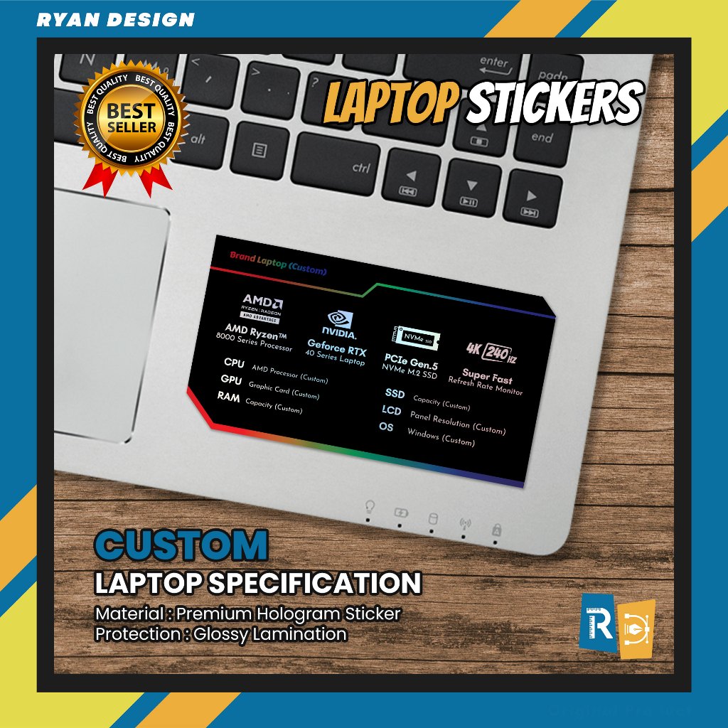 Stiker Custom Logo Laptop Stiker Spesifikasi Fitur Laptop Stiker Nvidia RTX GTX Intel Amd