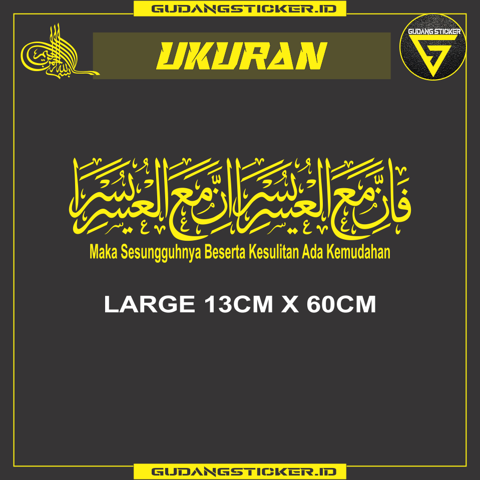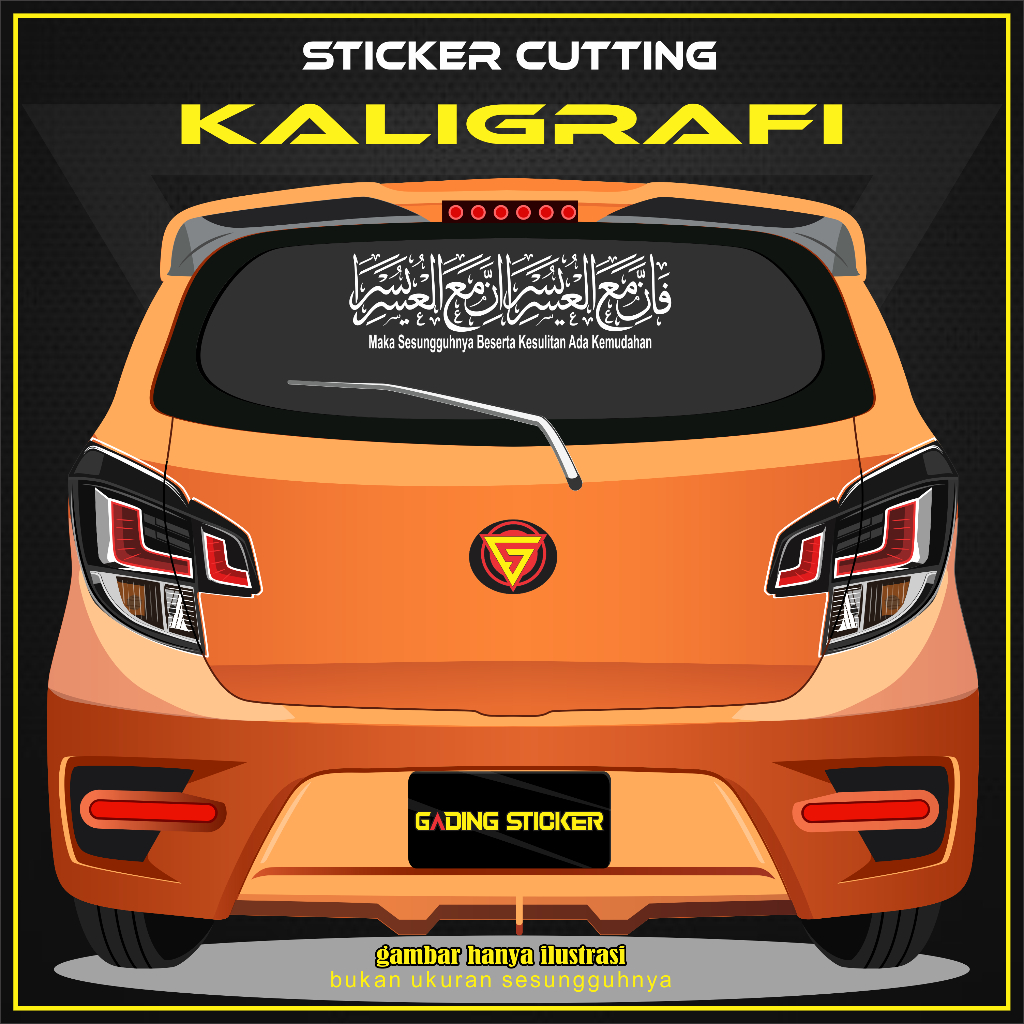 Stiker kaligrafi kaca depan belakang MOBIL FA INNA MA'AL USRI YUSRA al insyiroh k005