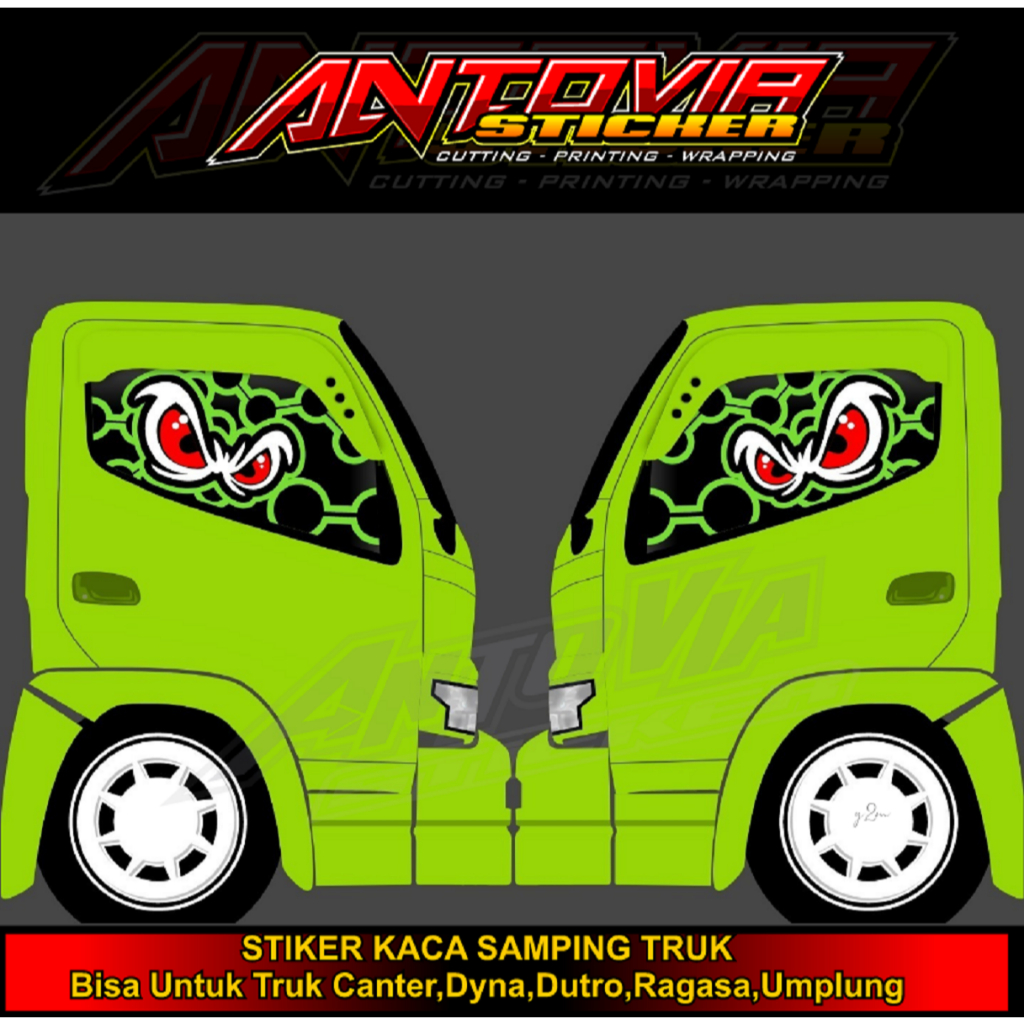 Stiker Cutting Dan One way + Kaca Samping Truk Dutro Desain Jaring Jaring Mata Sinis + Bisa Custom