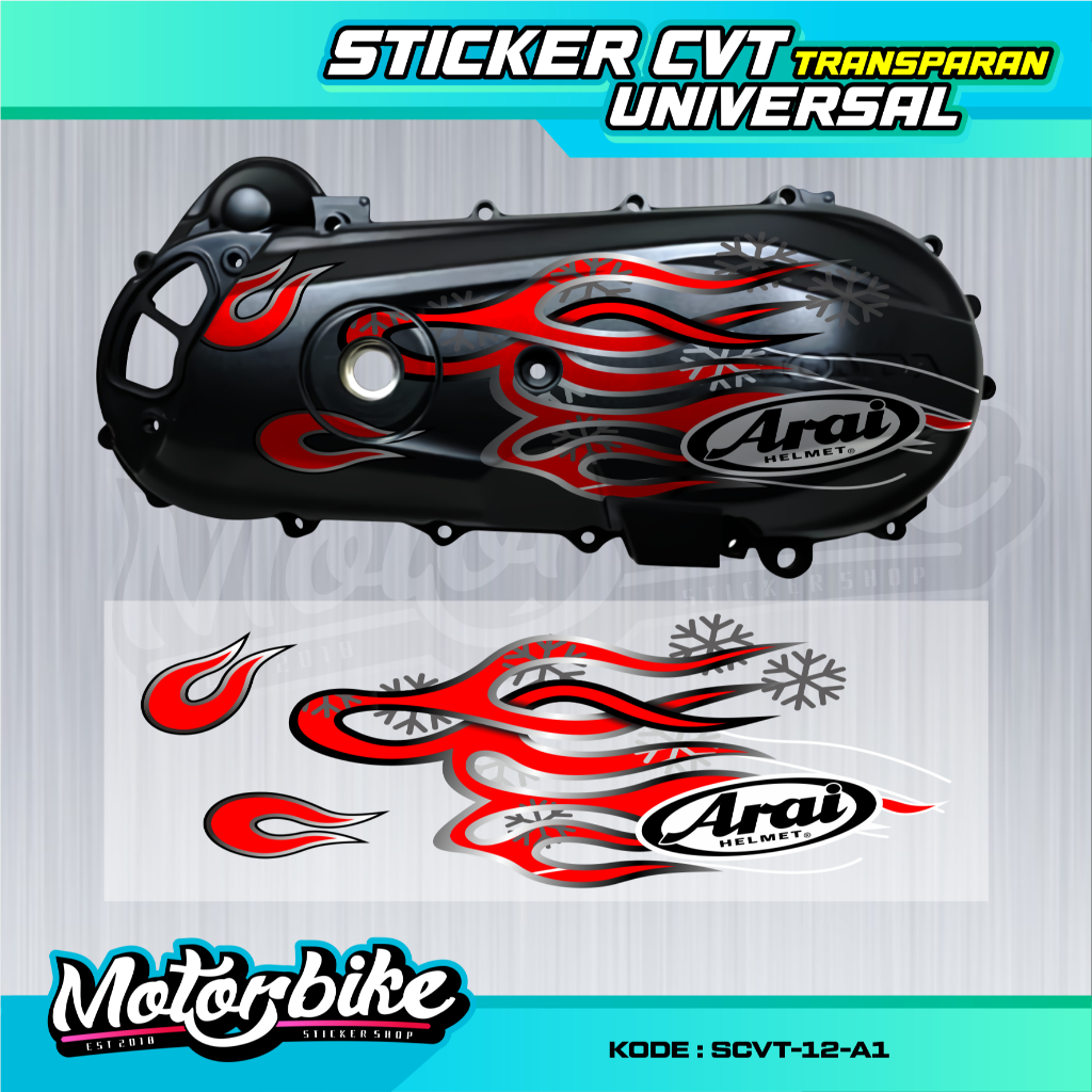 Stiker Cvt Transparan New Motif Variasi Arai Api Merah-Cocok Untuk Semua Type Motor-Bisa Custom-SCVT