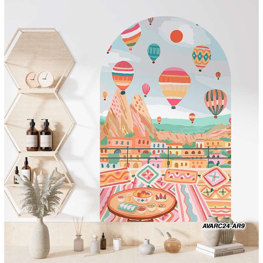 Stiker Dinding Aesthetic - Stiker Dinding Arch Design - Stiker Dinding Motif Abstrak 1 - Stiker Dinding Gambar Balon Udara Cappadocia - Sticker Dinding - Wall Stiker - Wall Sticker - Wallpaper Custom Official