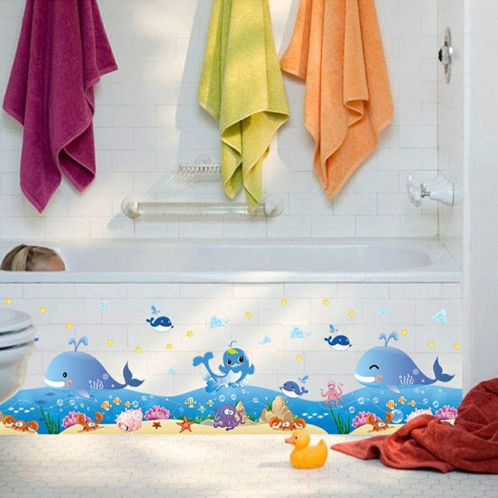 Stiker Dinding / Kaca / Wall Sticker (Ikan Paus dan Hewan Laut Lucu)