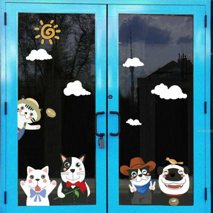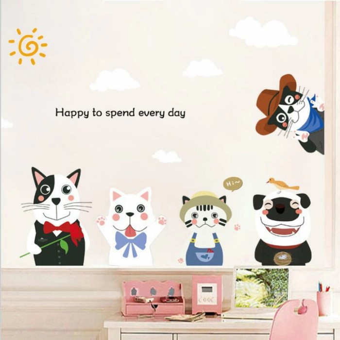 Stiker Dinding / Kaca / Wall Sticker: 5 Anjing Kartun Lucu