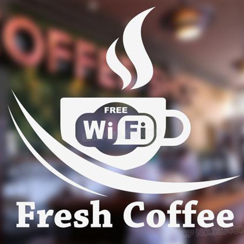 Stiker Dinding Kopi Dekorasi Kafe Free Wifi Cup Wall Decals For Coffee Shop Sign Removable Sticker Window Decoration Shop Show Glass Decor - Homes Sticker
