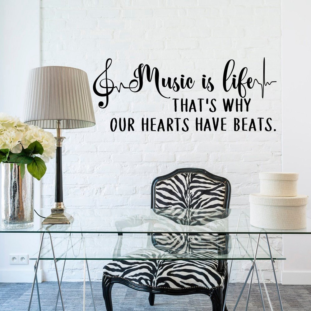Stiker Dinding Musik Music Is Life Wall Decal Quote Music Notes Wall Sticker Treble Vinyl Recording