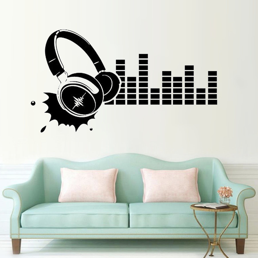 Stiker Dinding Musik Vinyl Dinding Decal Headphone Suara Musik Malam Club Pesta Seni Dekorasi