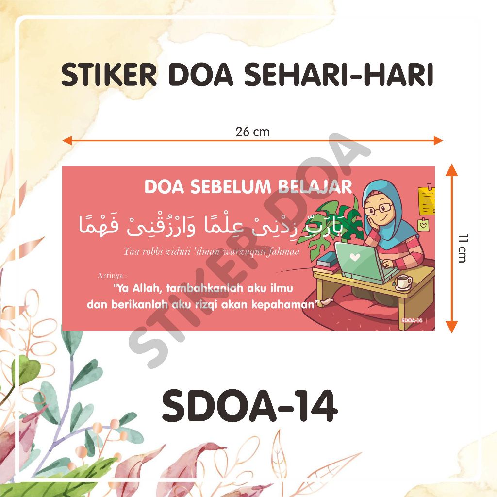 Stiker Do'a sehari-hari - DOA SEBELUM BELAJAR - Dekorasi stiker doa