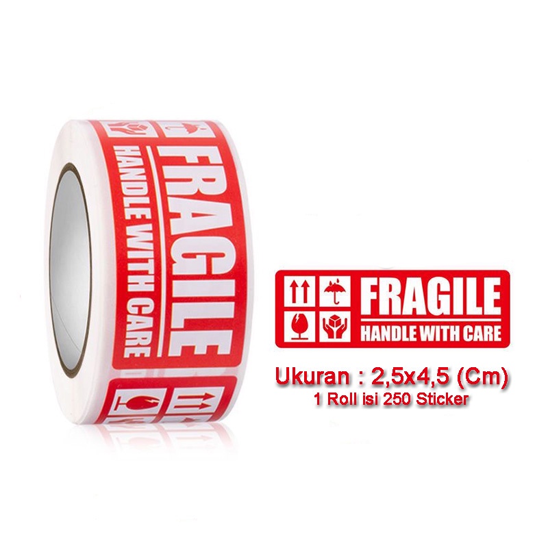 COD Stiker Fragile 1 Roll 250Pcs Sticker Awas Pecah Jangan Banting STC07