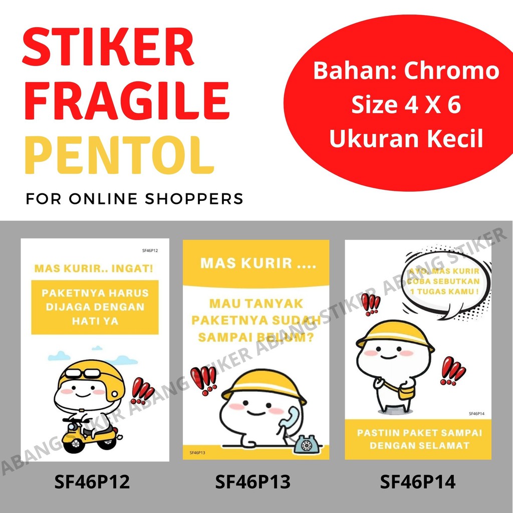 Stiker Fragile Lucu PENTOL 4 x 6 cm