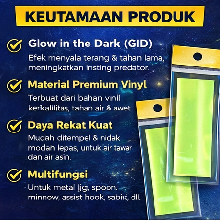 Stiker GID Markiman Metal Jig Spoon Minnow Sticker Glow In The Dark Umpan Pancing Fosfor Luminous 5x5cm 10x5cm | SABIKI FIRELOCK FLASHER KOTREKAN UMPAN ASSIST HOOK