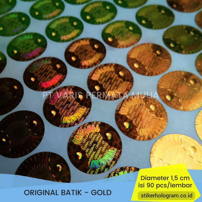 Stiker Hologram Original 1,5 CM Bulat Motif Batik Gold Silver Stiker Segel Produk
