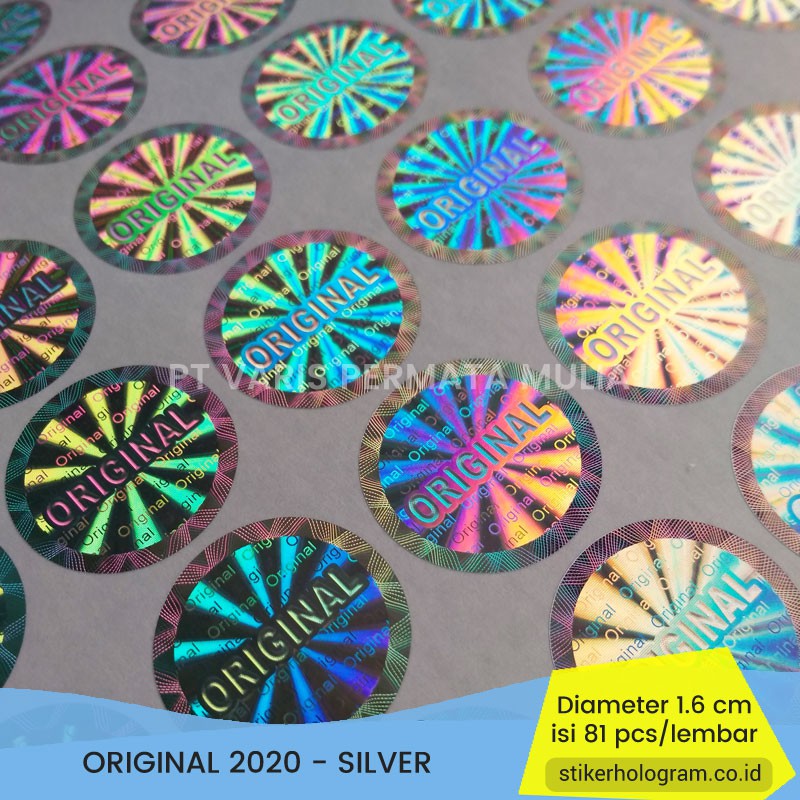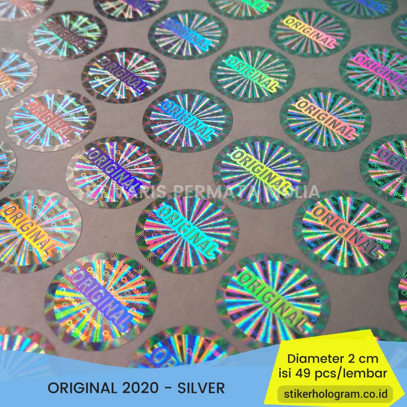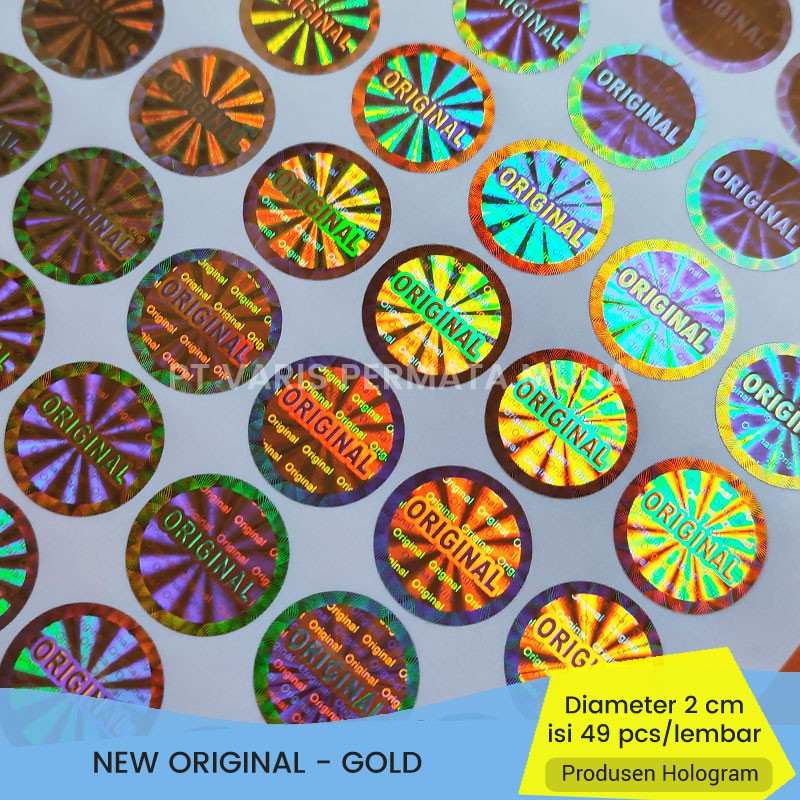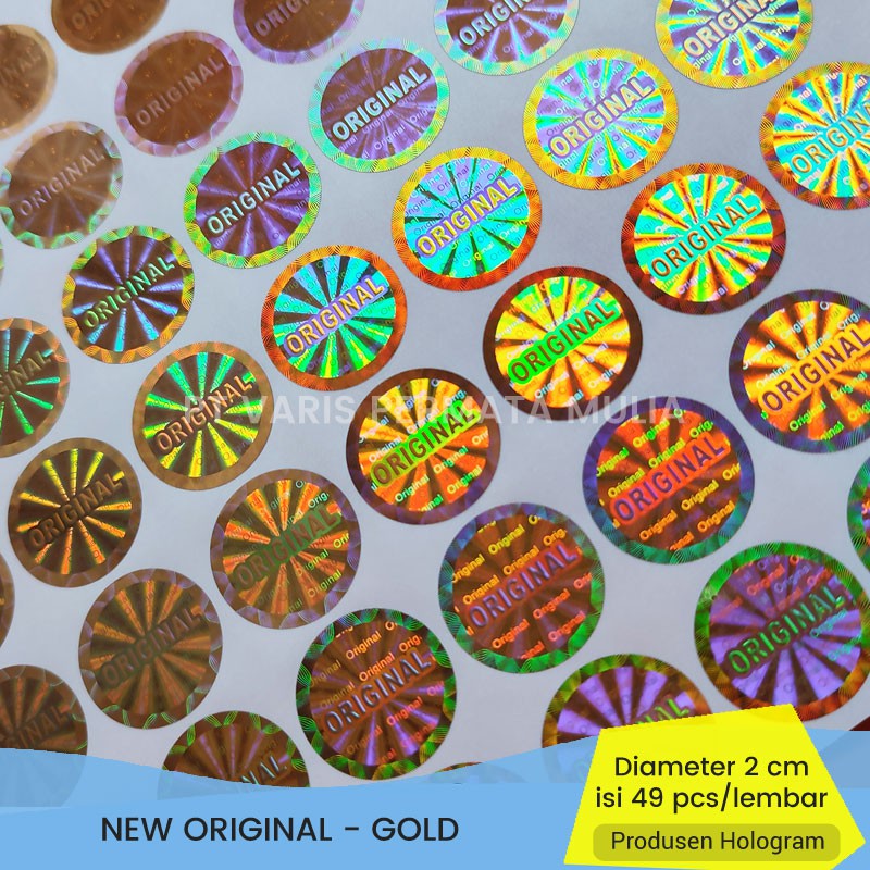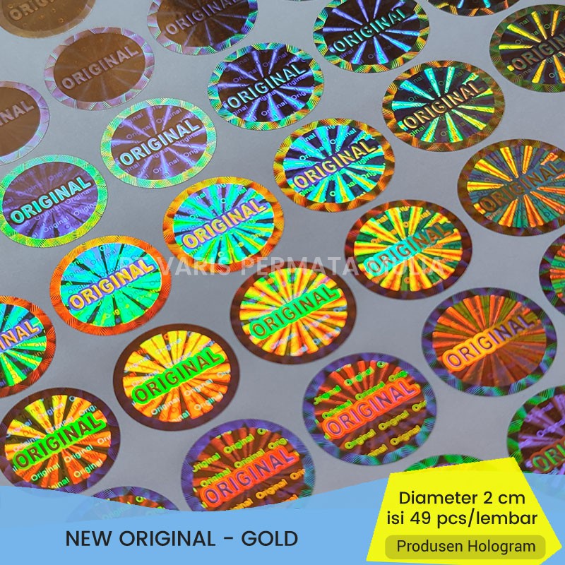 Stiker Hologram Original 2 CM Silver Gold Bulat 3D