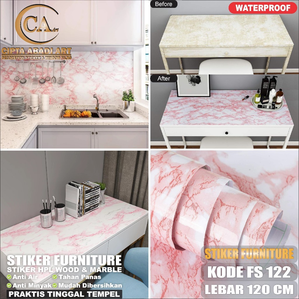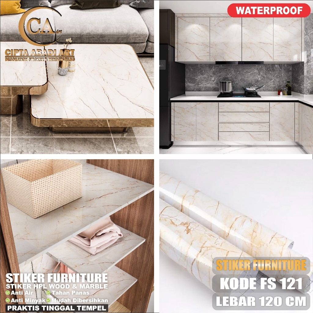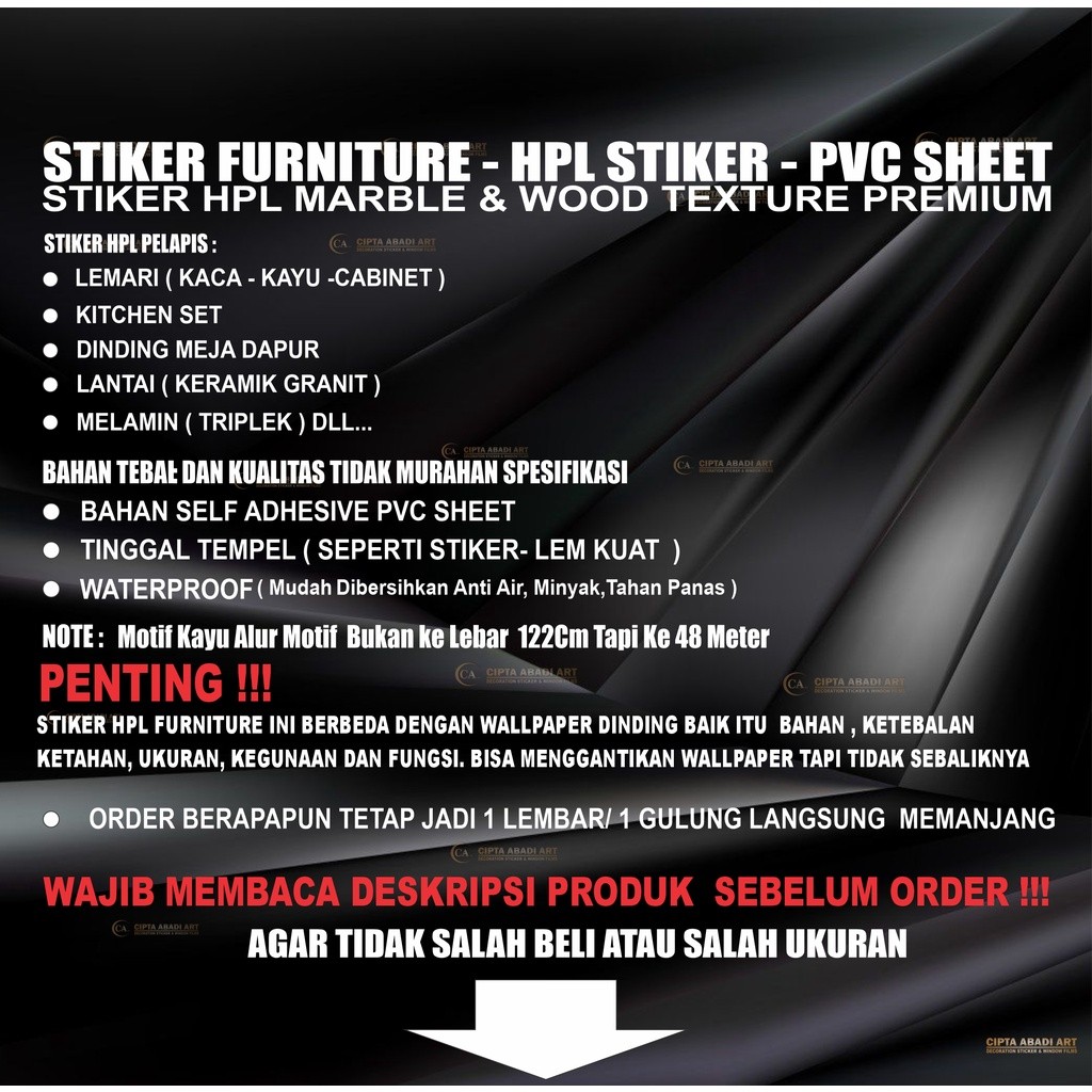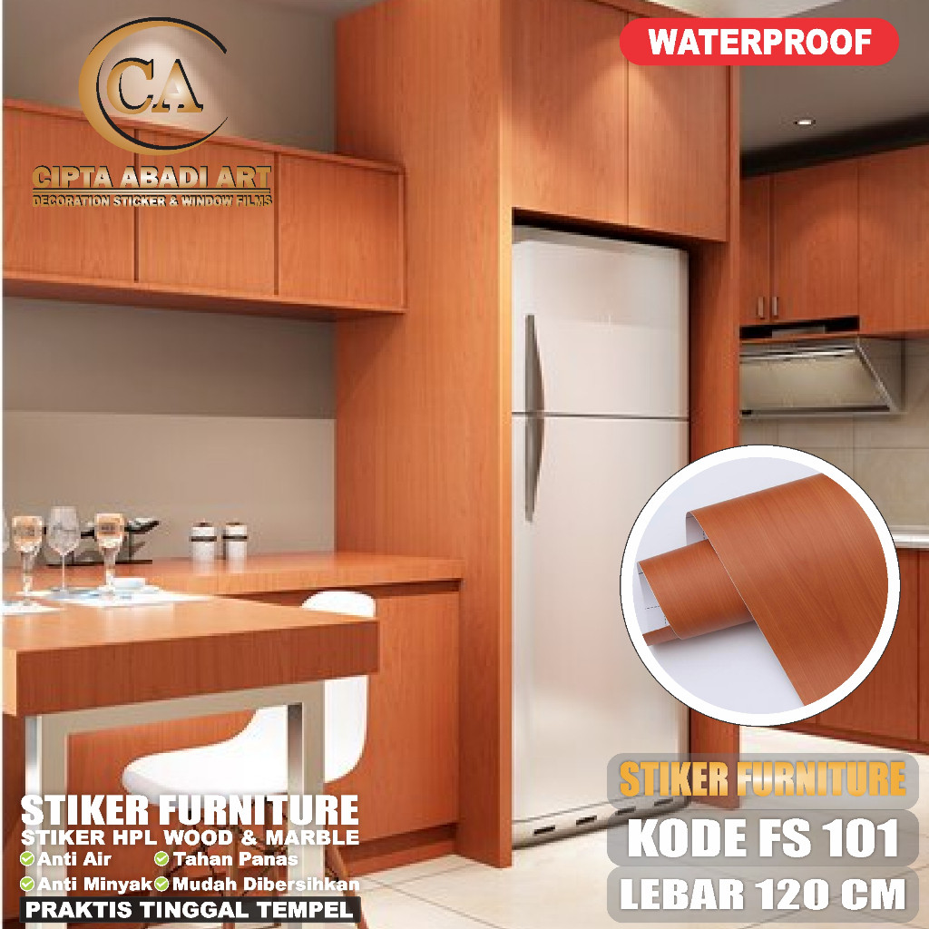 Stiker Hpl Sticker Lemari Meja Kitchen Set Dapur Anti Air Minyak Panas Bahan PVC SHEET Ukuran L-122Cm