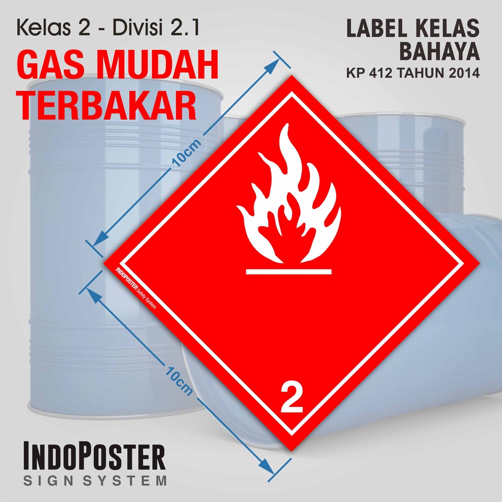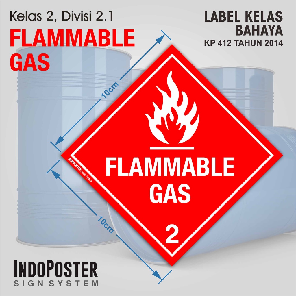 Stiker Label Kemasan Kontainer B3 IATA DOT UN Hazardous Material Safety System Class 2 Flammable Gas Mudah Menyala Terbakar