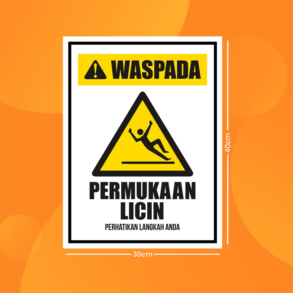 Stiker K3 AWAS PERMUKAAN LICIN (Print Tajam & Anti Air)