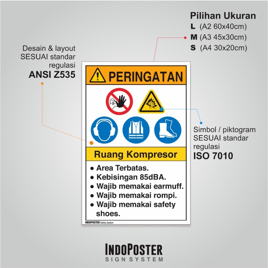 Stiker K3 Safety Sign ANSI Bahaya Bising Ruang Kompresor Wajib Earmuff