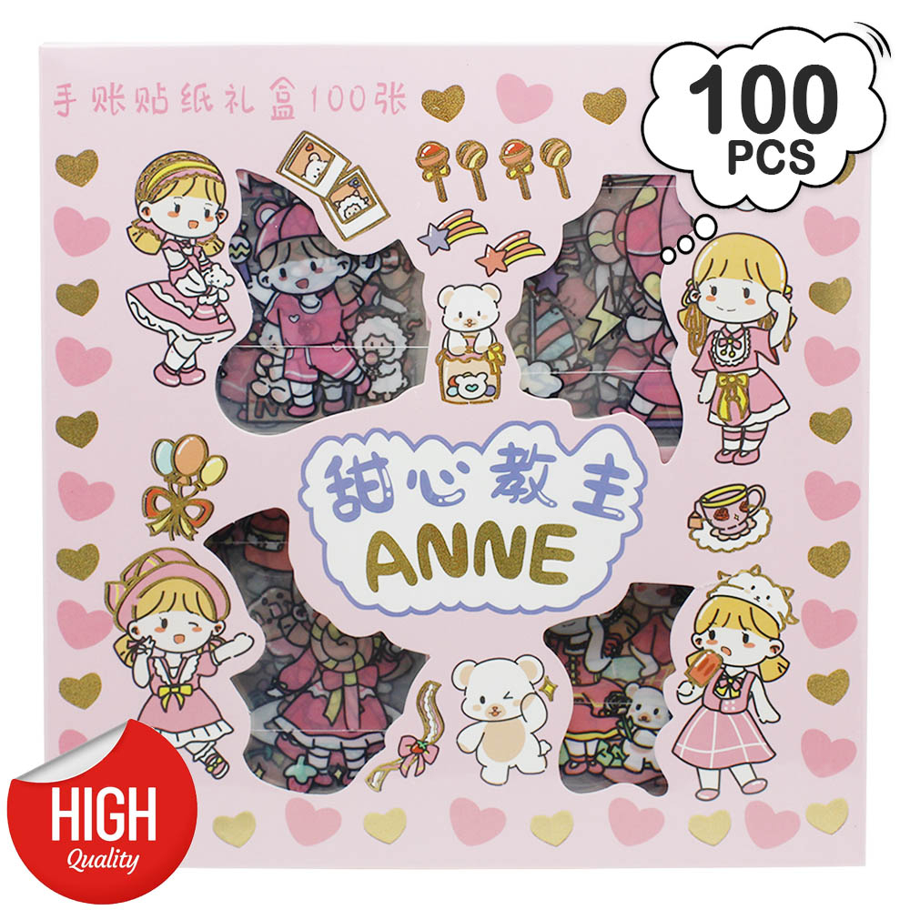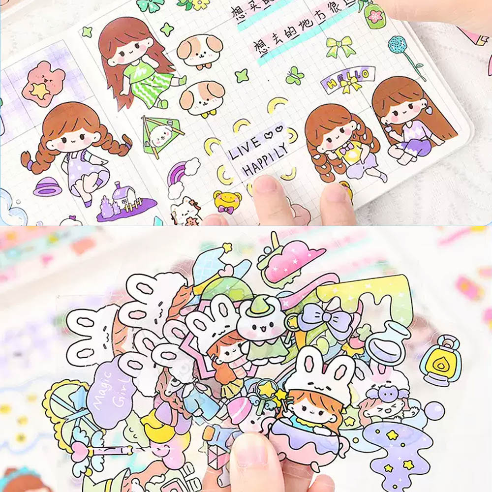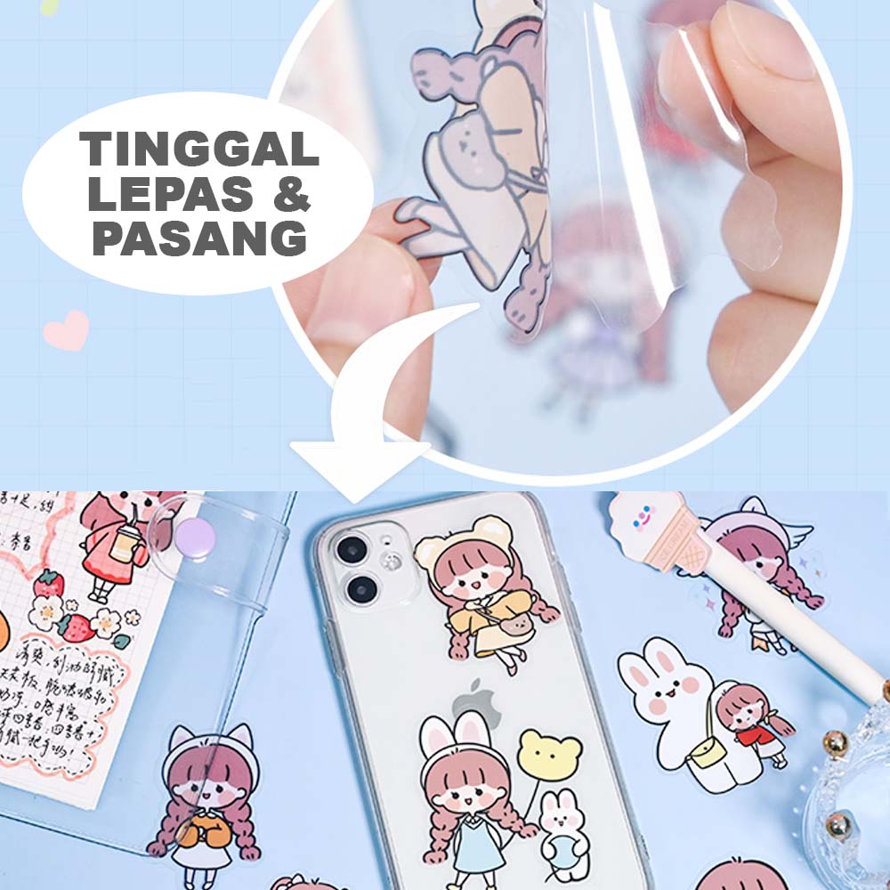 Stiker Kartun Aesthetic Lucu Transparant 100 Lembar Stiker Motif Kartun Korea Box PVC Anti Air Sticker Decorasi RANDOM