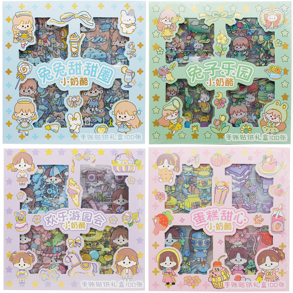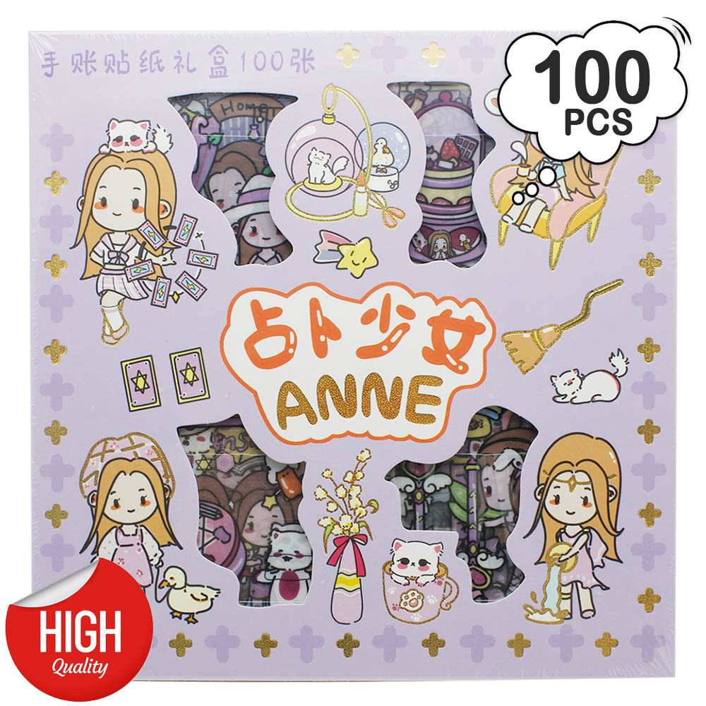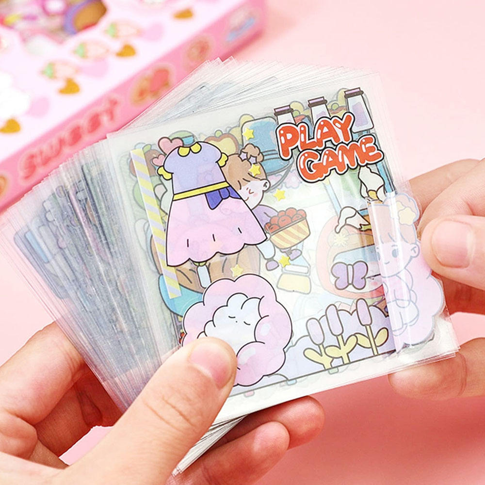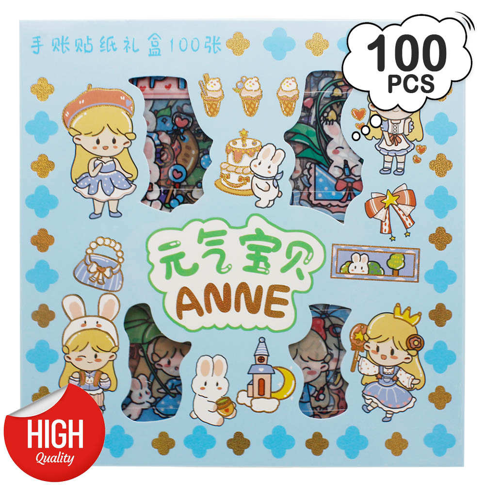 Stiker Kartun Aesthetic Lucu Transparant 100 Lembar Stiker Motif Kartun Korea Box PVC Anti Air Sticker Decorasi RANDOM