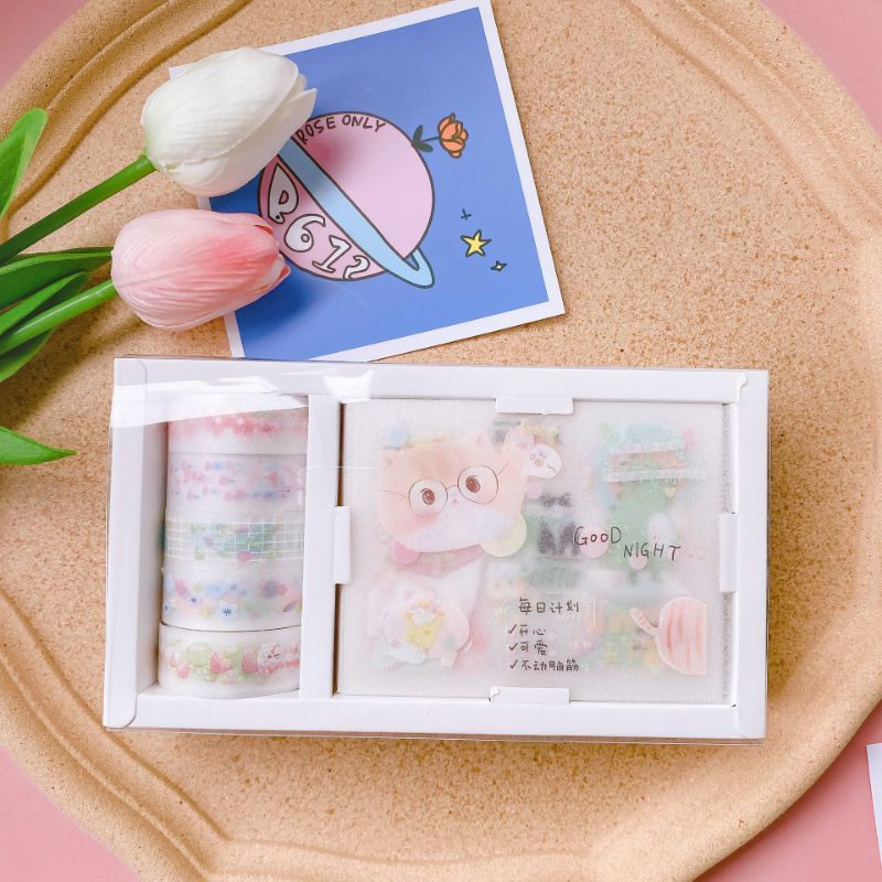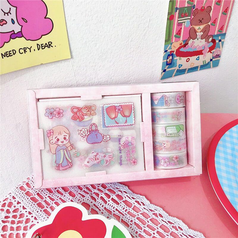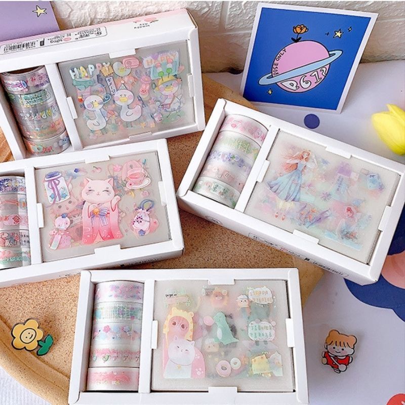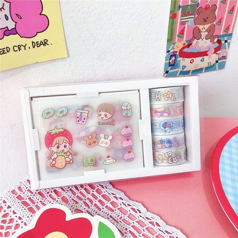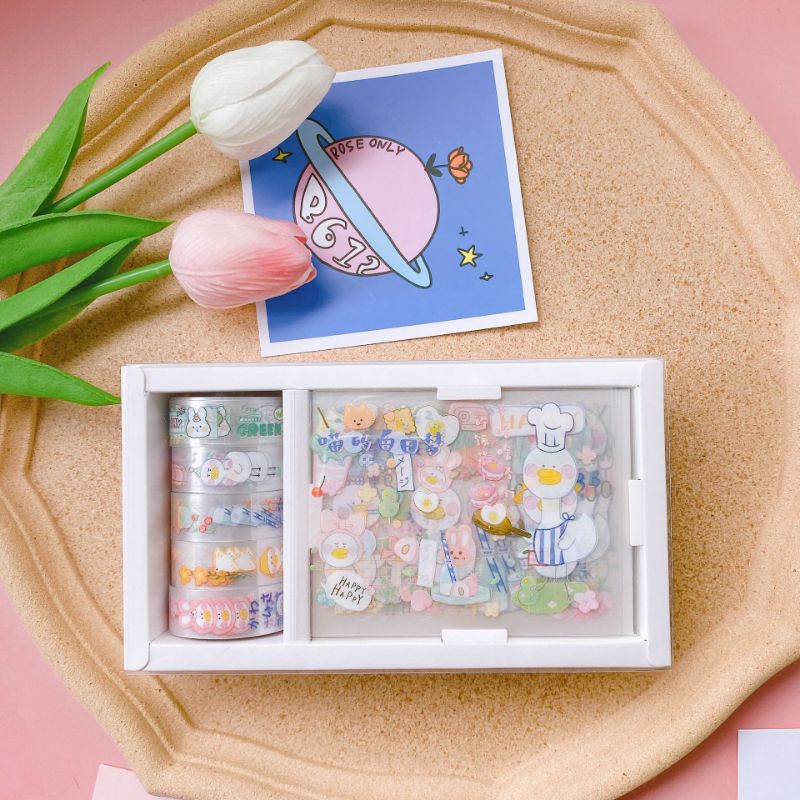 Stiker Kartun Lucu Estetik / Sticker Lucu Kartun / Selotip Kartun Transparan / Hiasan Kartun Tempel