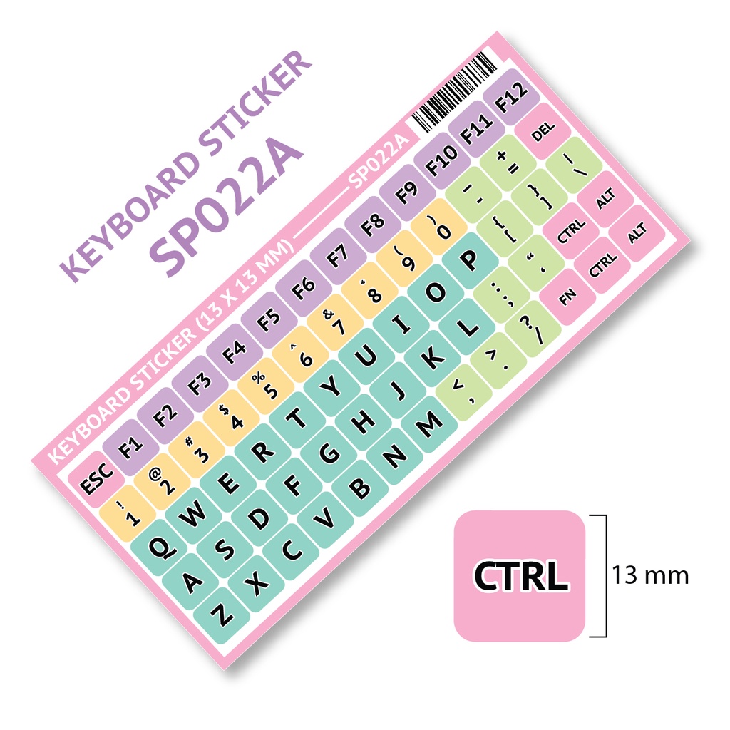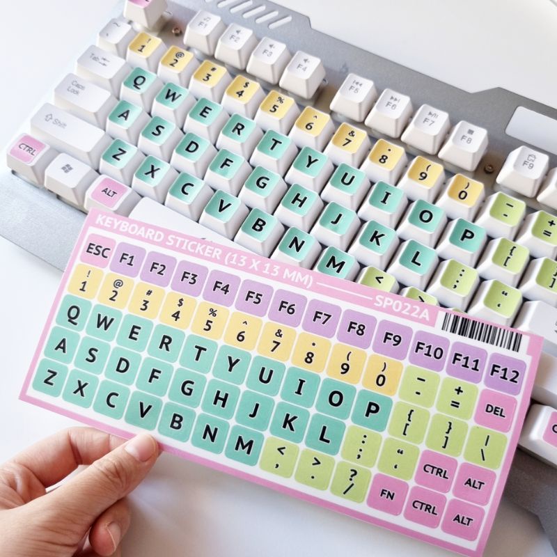 Stiker Keyboard 13x13mm Abjad Huruf Letter Alphabet Pelapis Angka Komputer Tahan Air Kiss Cut Warna Pastel SP022