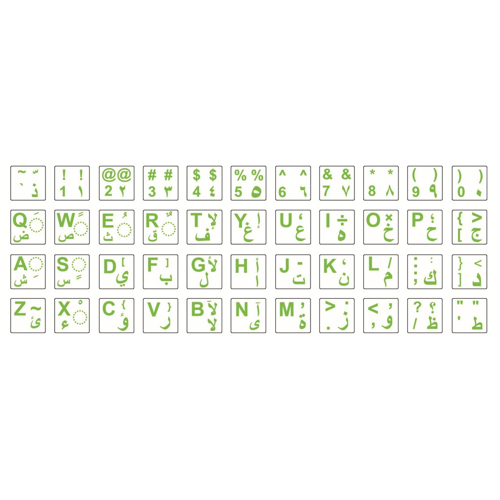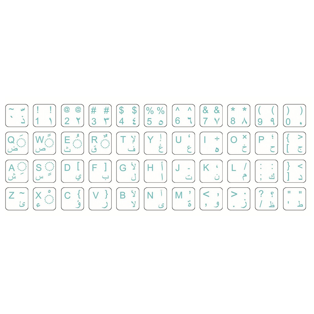 Stiker Keyboard Arab Background Putih Font Hijau Muda, Hitam, Biru Muda, Biru Dongker, Pink, Merah
