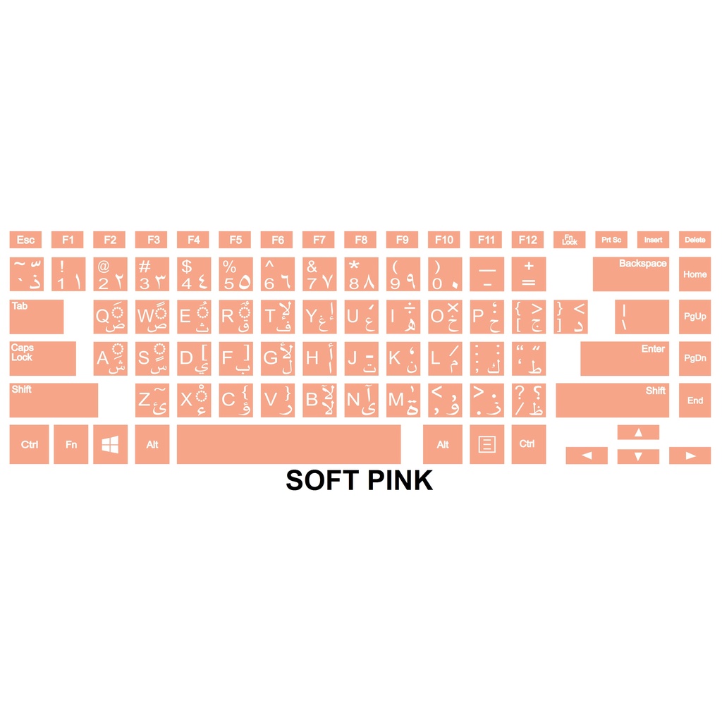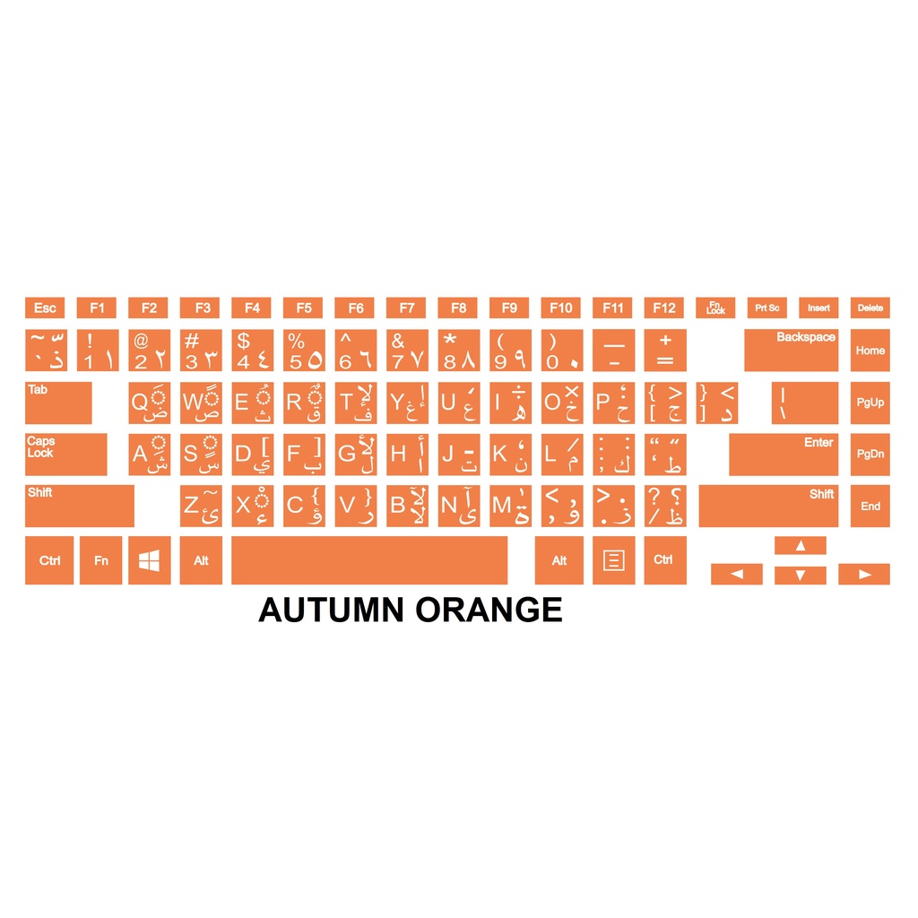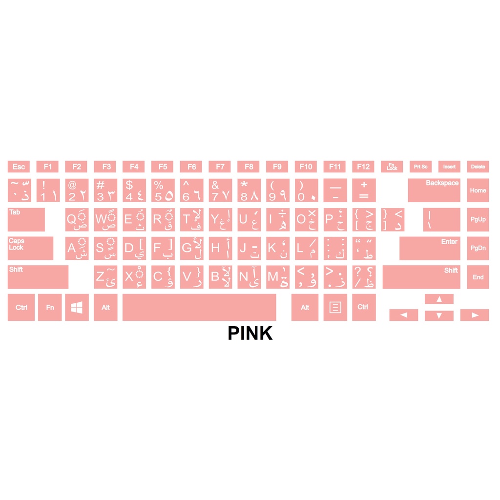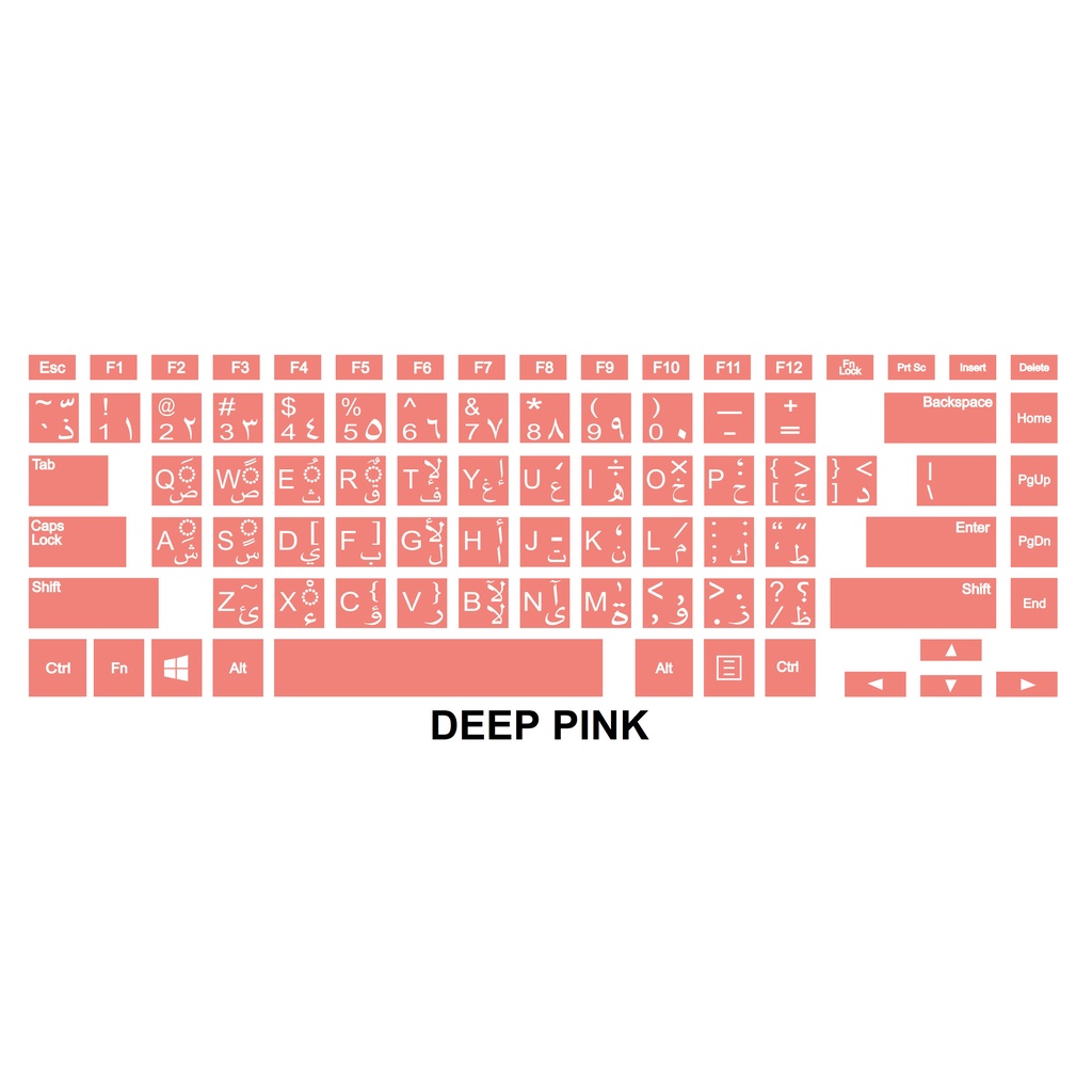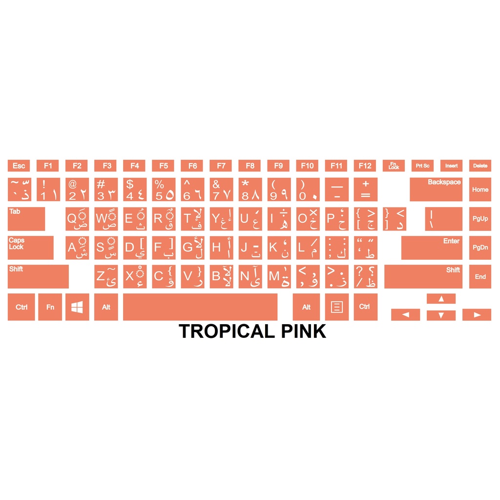 Stiker Keyboard Arab Full Keyboard Bacground Warna Pink dan orange Series Huruf Putih