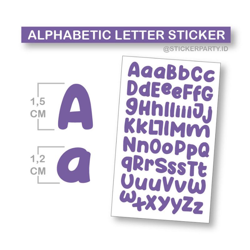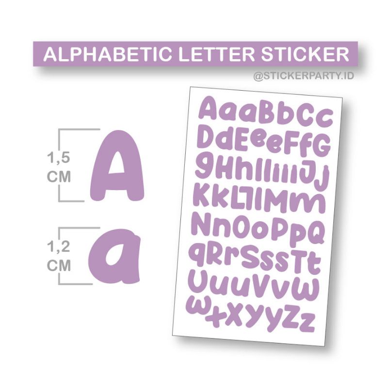 Stiker Kiss Cut Huruf Abjad Alfabet Letter Warna Hitam Putih Ungu Pink OAL16
