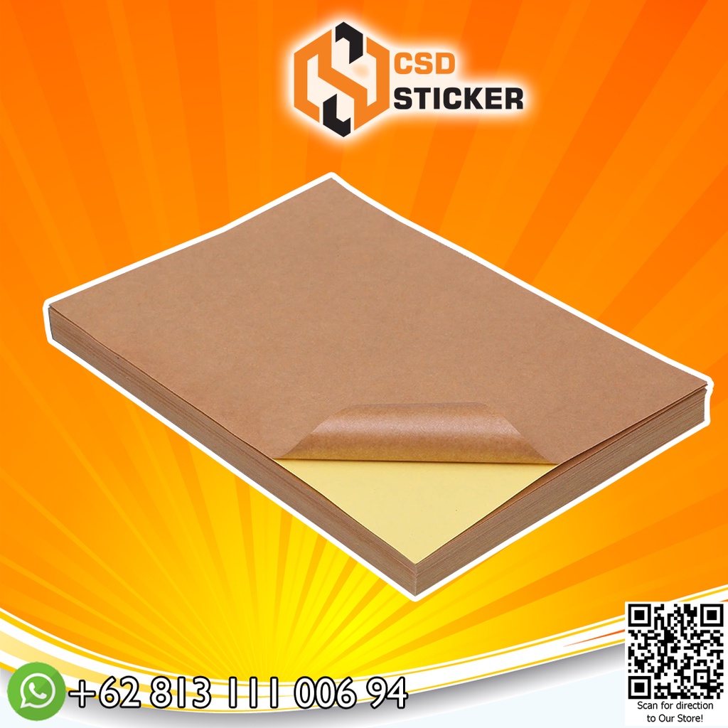 Stiker Kraft A4 Sticker Vintage Retro Recycle Paper Label Kertas Coklat Mirip kertas Samson - Pack isi 20 Lembar
