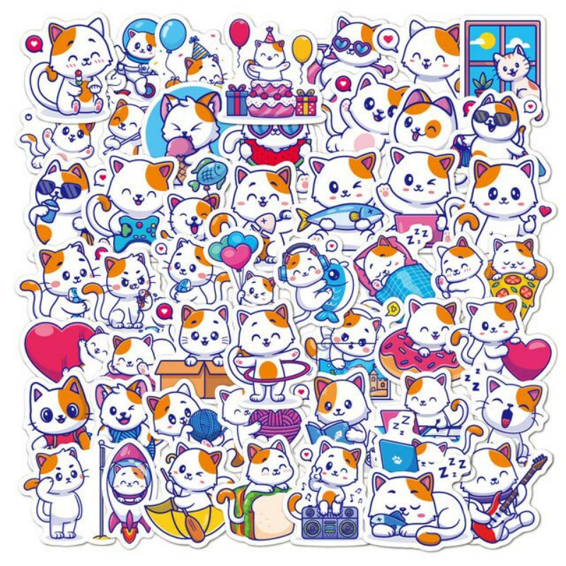 Stiker Kucing Pack Style 260272- Stiker Aesthetic Keren Imut Laptop, Aksesoris Hp, Anti Air, Motif, Helm, Tumbler, Koper, Kulkas